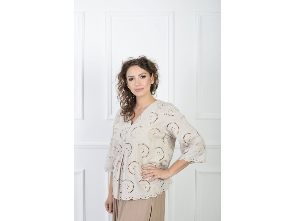 Béžová bavlnená blúzka s vyšívaným vzorom a 3/4 rukávom 21925