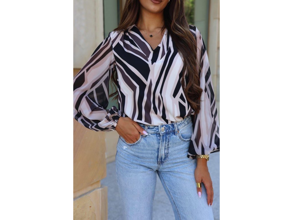Dámska béžovo-čierna vzorovaná blúzka 22306