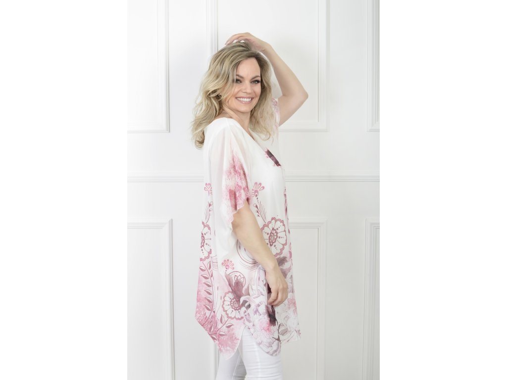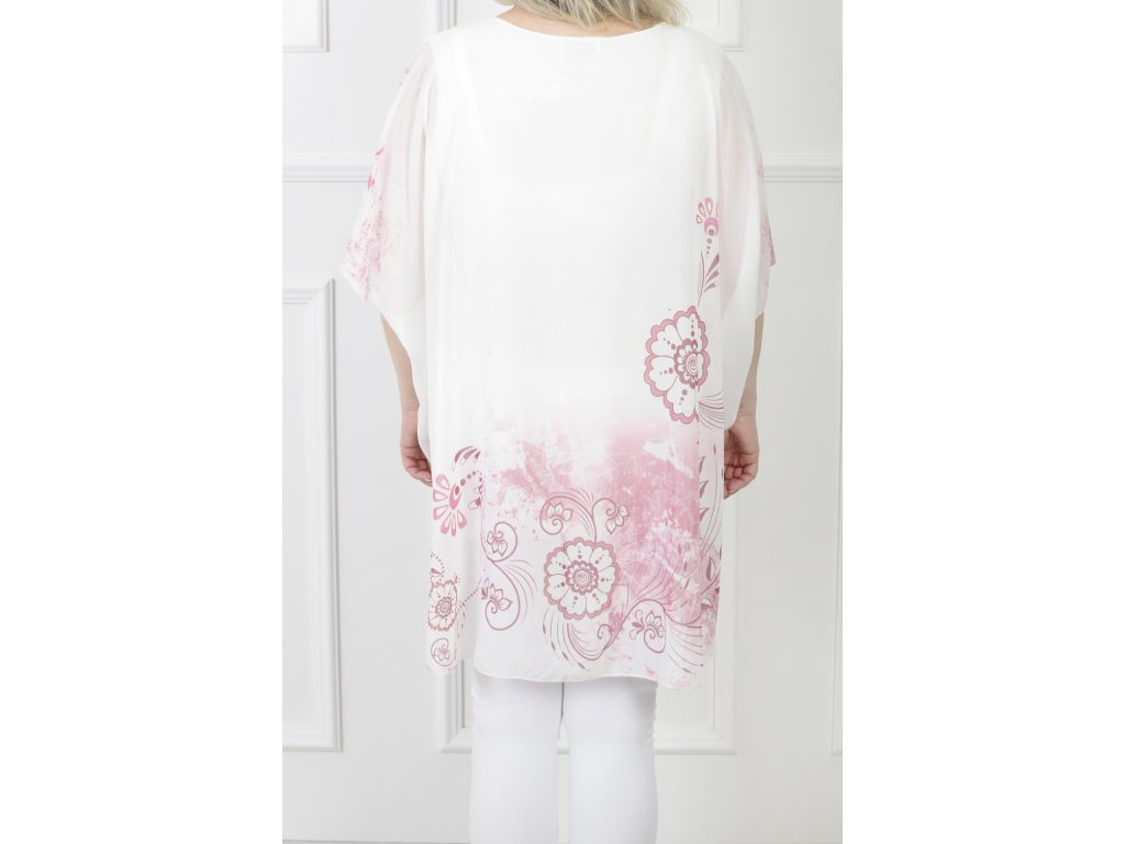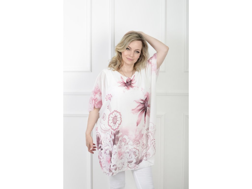 Dámska bielo-ružová tunika so vzorom kvetov 21611