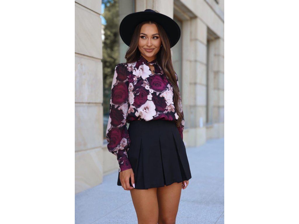 Dámska bordovo-béžovo-čierna kvetovaná blúzka s ozdobnými gombíkmi 22307