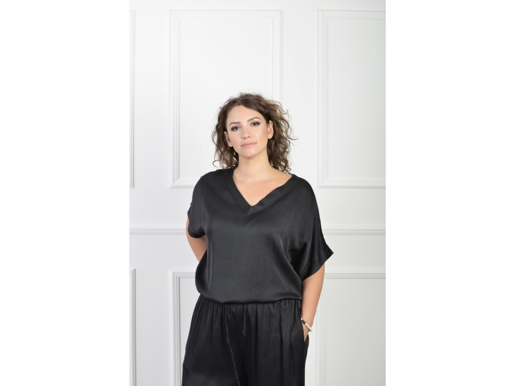 Dámska čierna blúzka s V výstrihom 21908