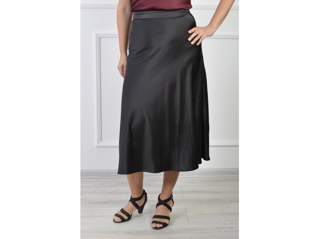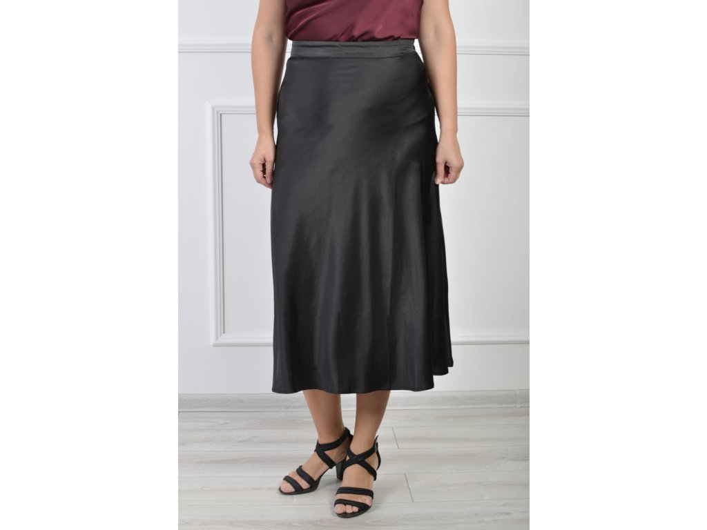 Dámska dlhá saténová sukňa čiernej farby 22089
