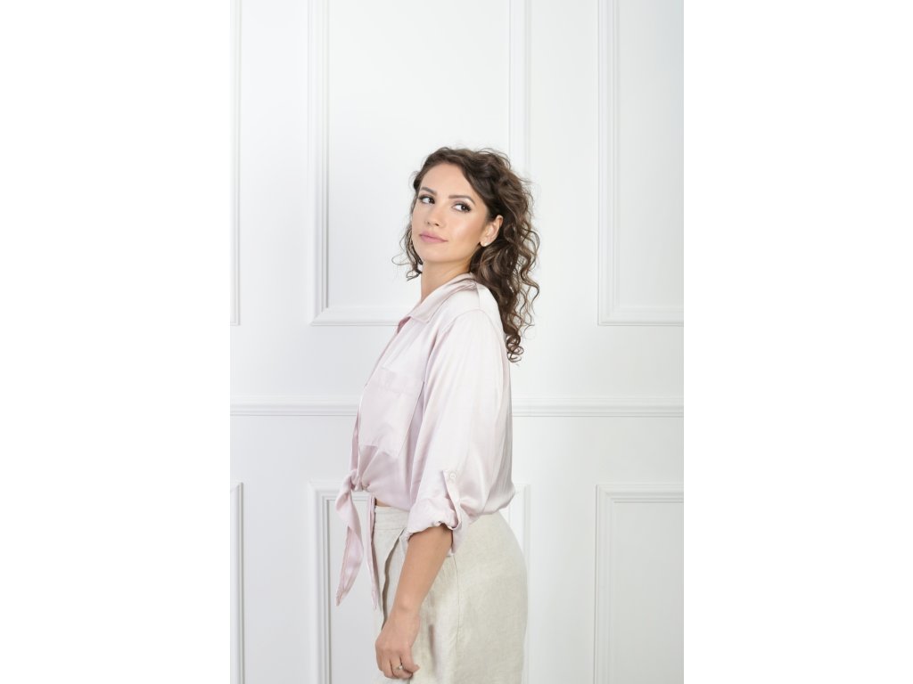 Dámska hladká bledoružová blúzka s viazaním 21904