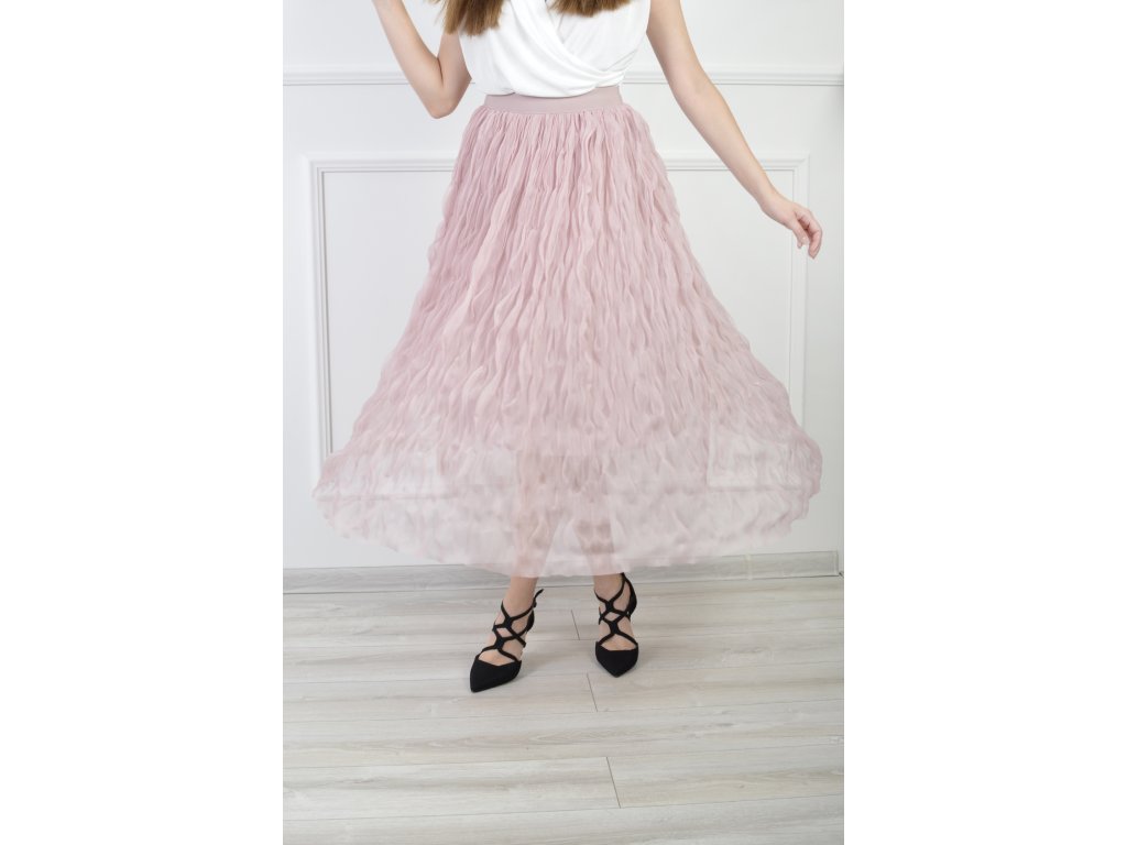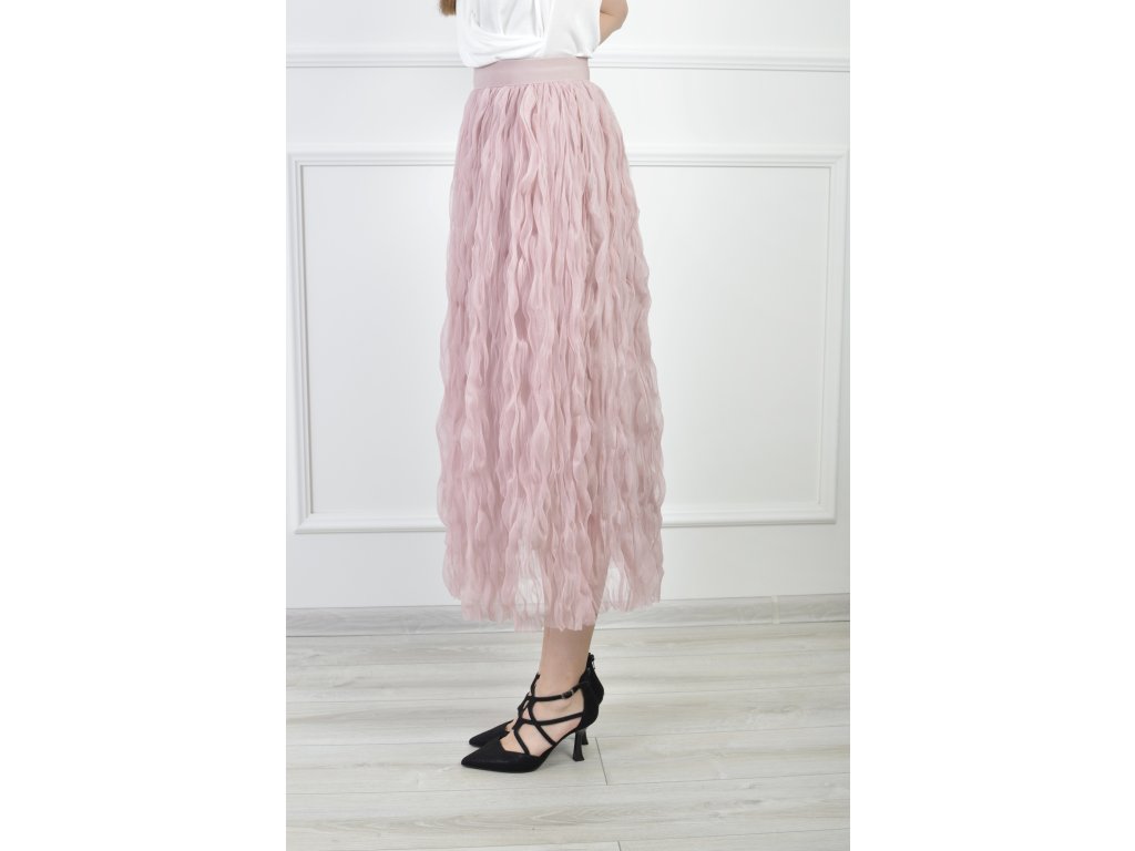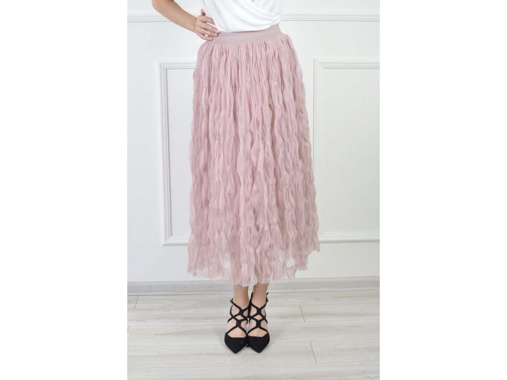Dámska sukňa ružovej farby s vlnitým efektom .