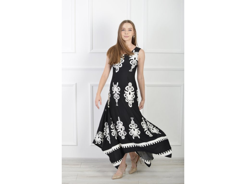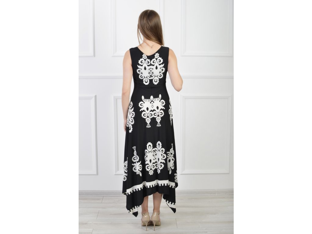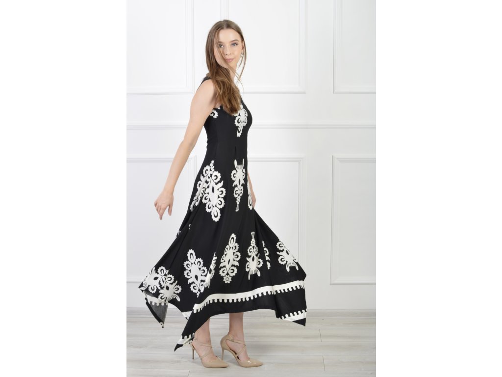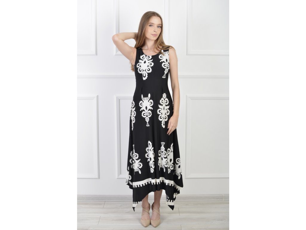 Dámske asymetrické bezrukávové čierno-biele šaty 22088