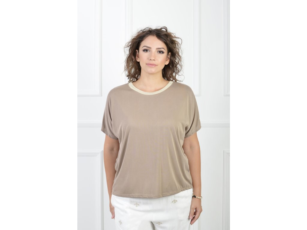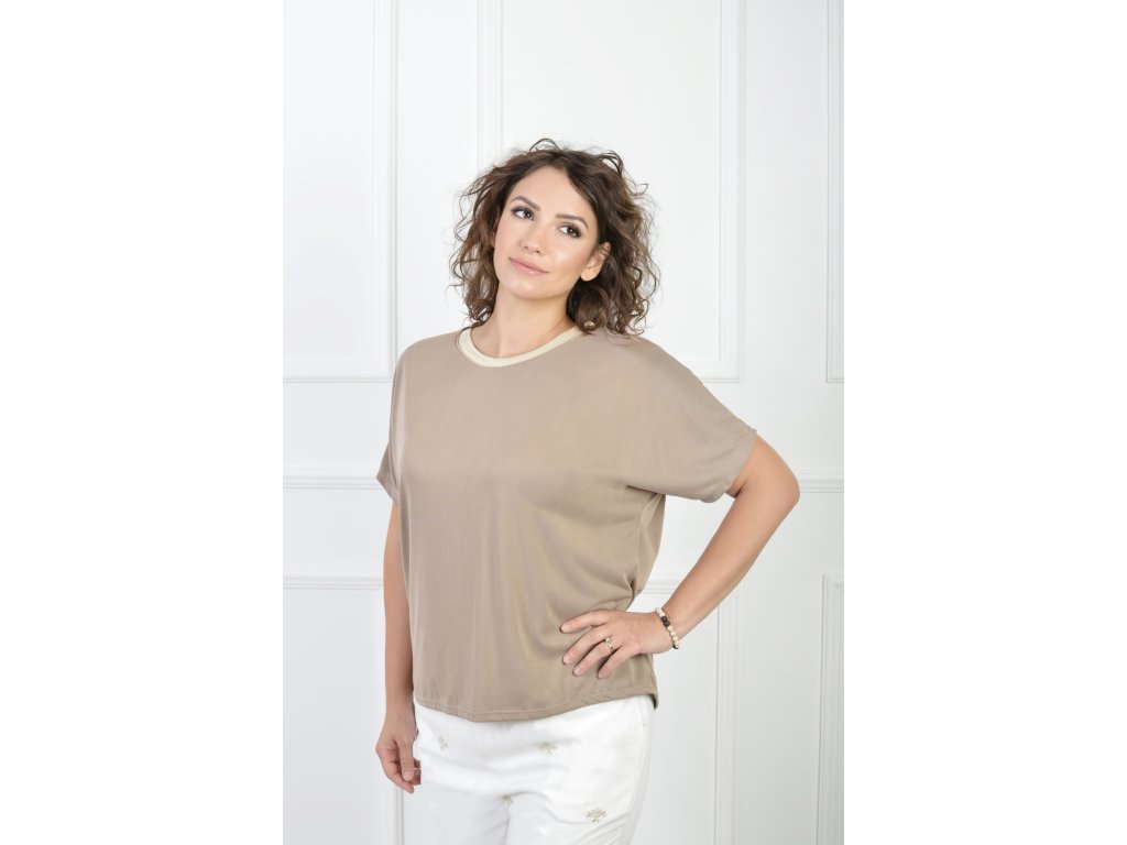 Dámske béžové tričko so zlatým lemom okolo krku 21931