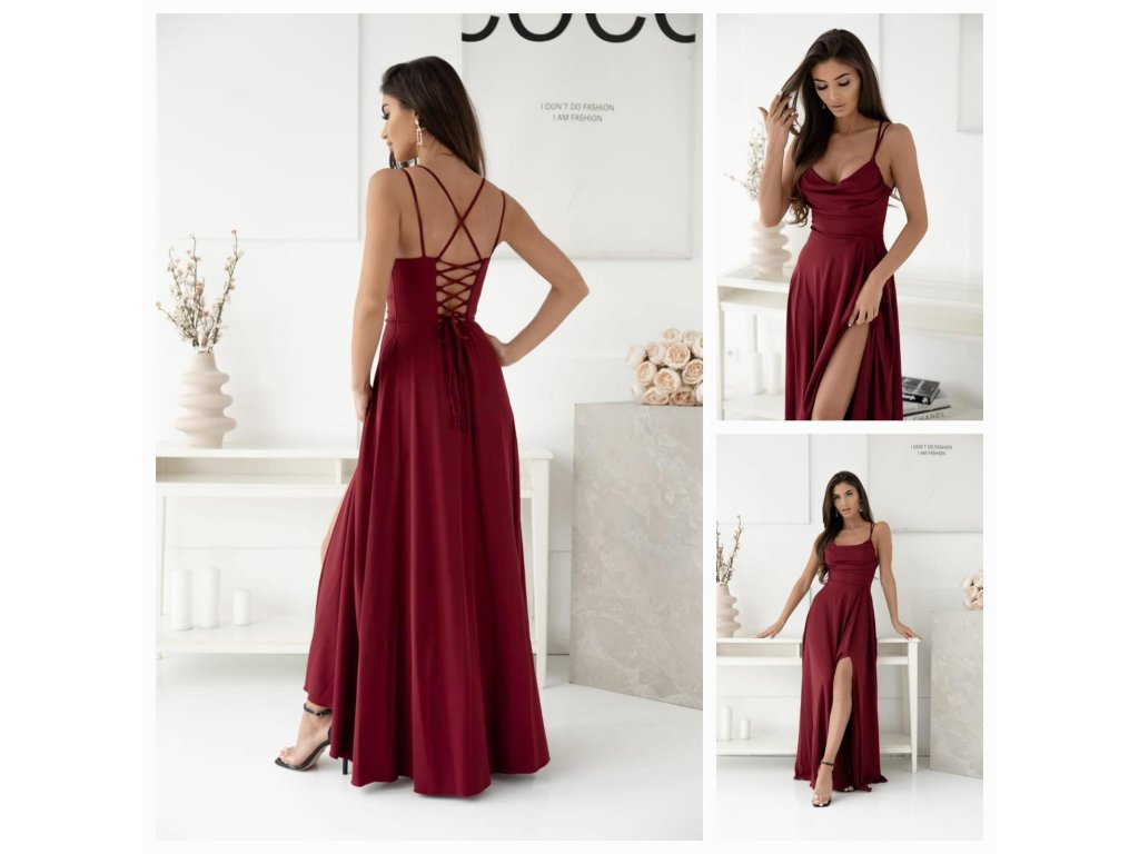 Dámske bordové šaty na ramienka a viazaním na chrbte 22454