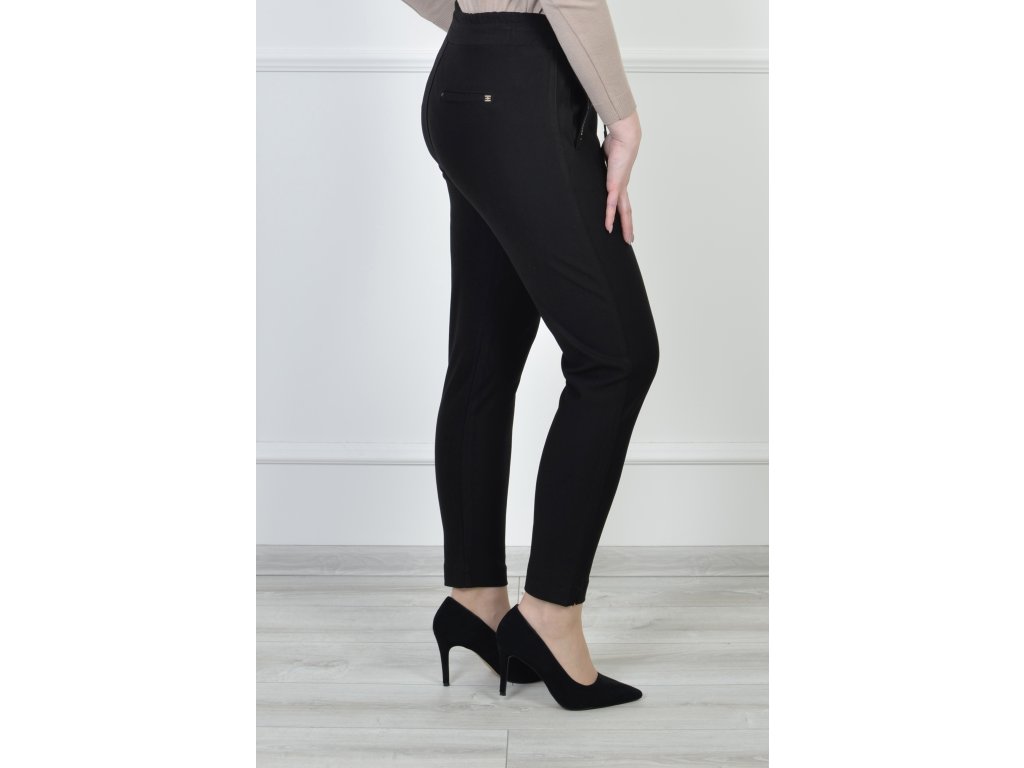 Dámske čierne nohavice s vreckami a viazaním na šnúrku 19433