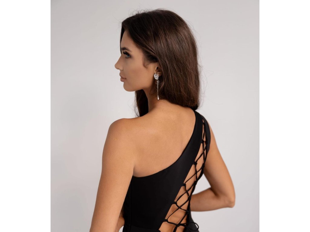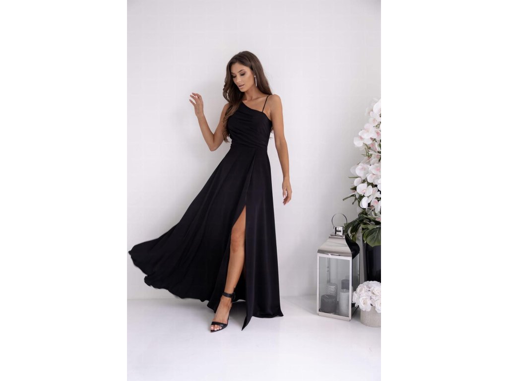 Dámske čierne šaty s rozparkom na jedno rameno 22229