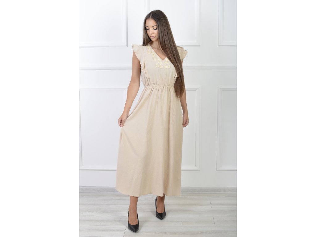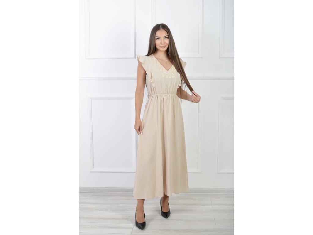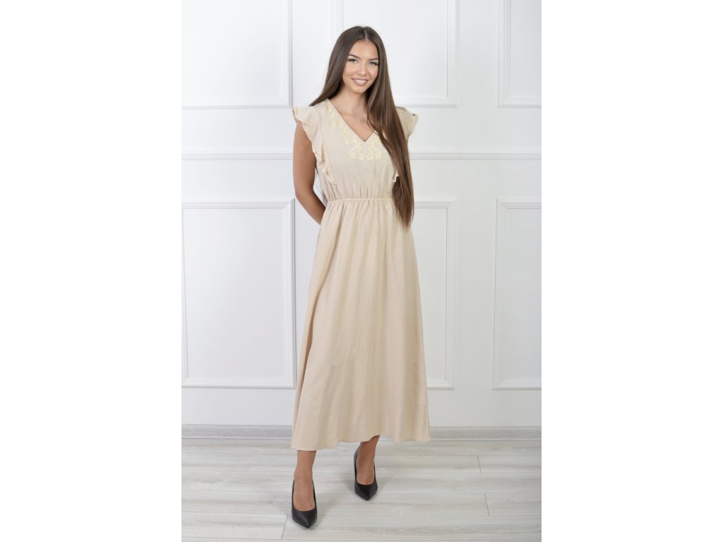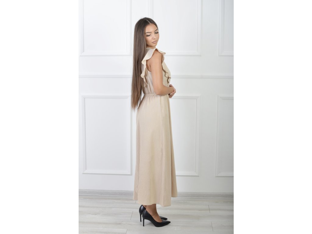 Dámske dlhé béžové bavlnené šaty s volánmi 21857