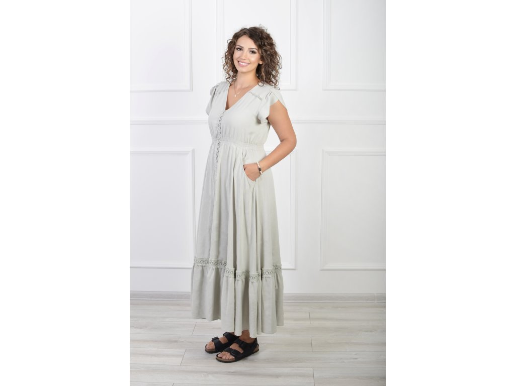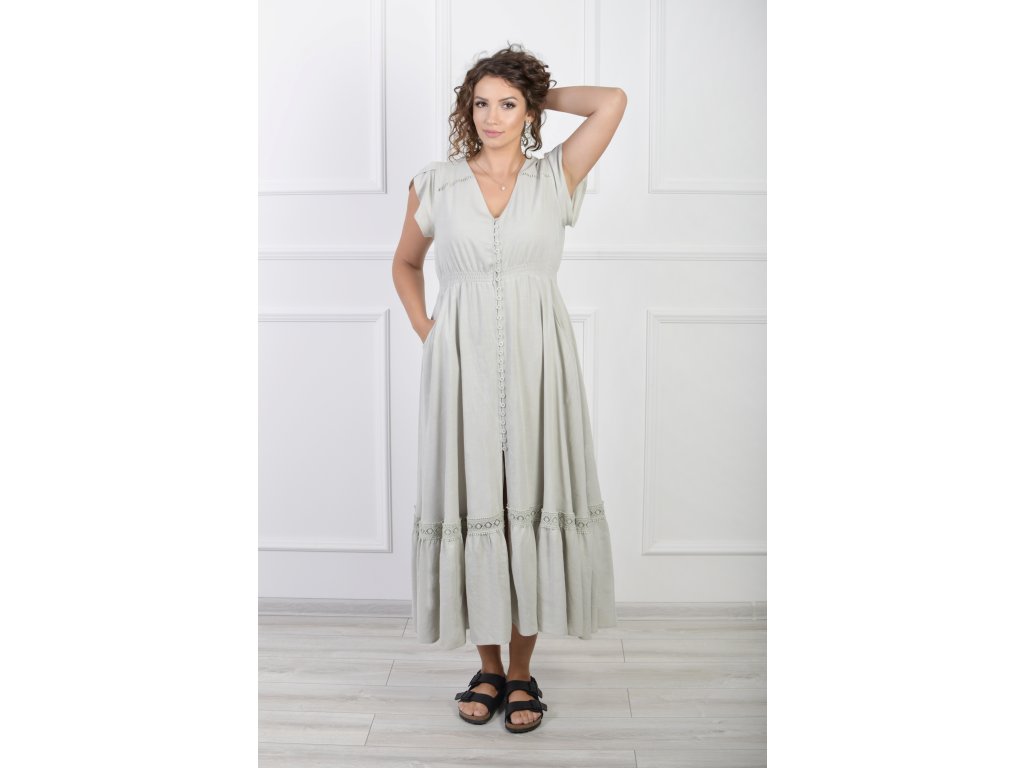 Dámske dlhé bledozelené šaty so zapínaním na gombíky 22087