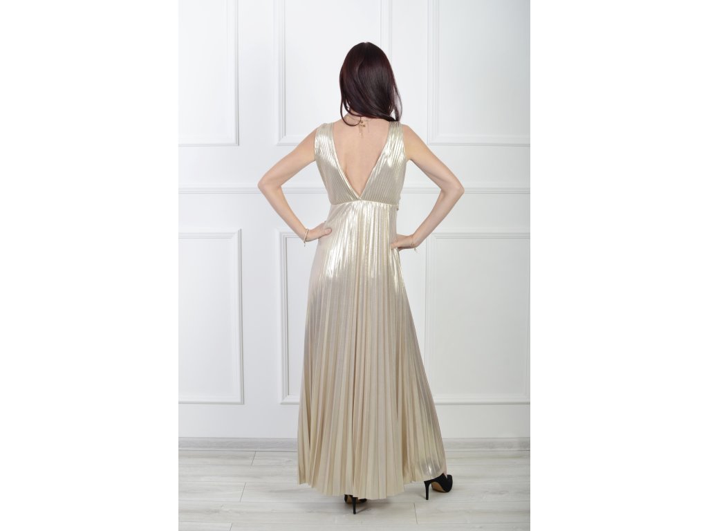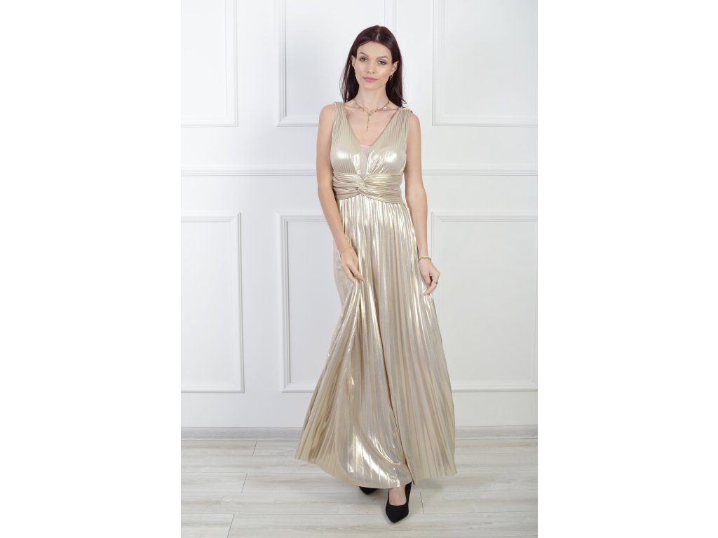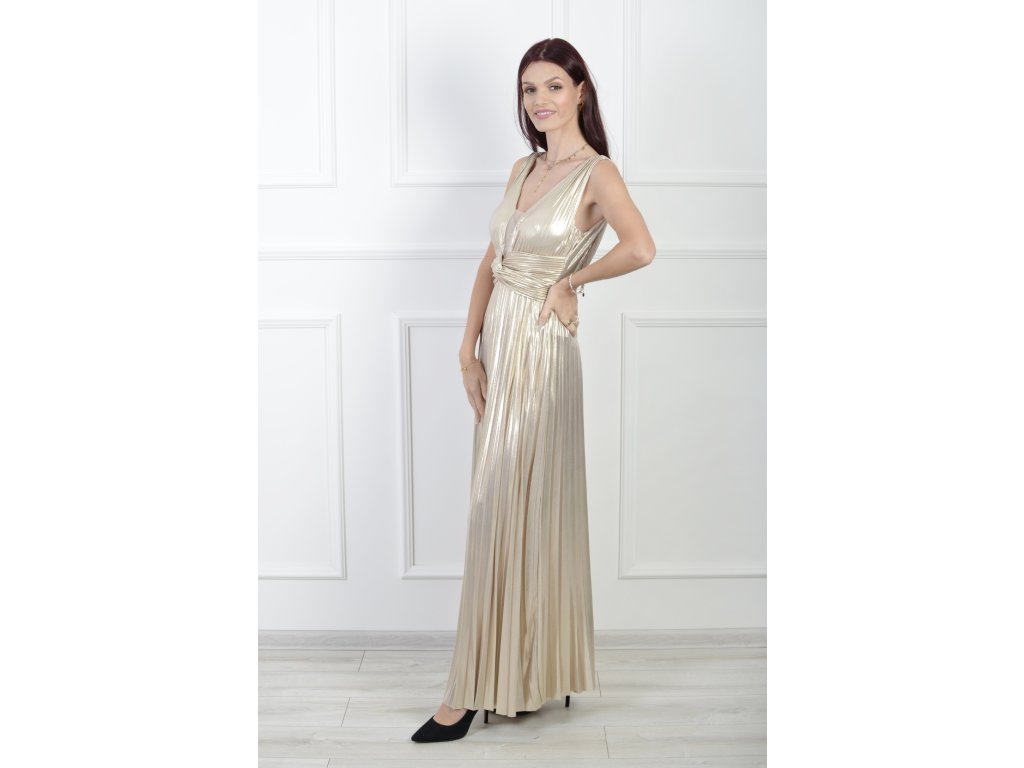 Dámske dlhé lesklé plisované šaty béžovej farby 22327