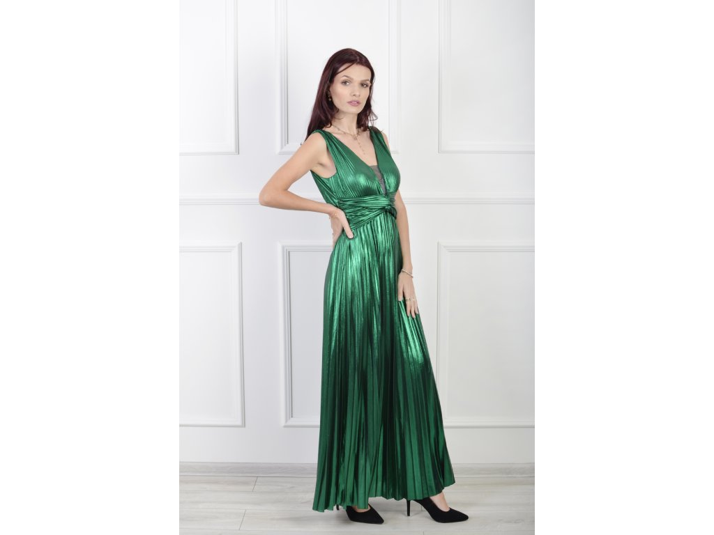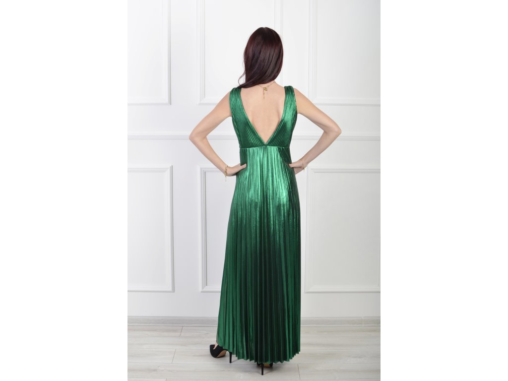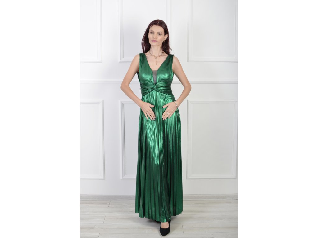 Dámske dlhé lesklé plisované šaty zelenej farby 22330