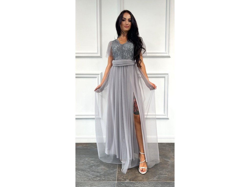 Dámske dlhé šaty sivej farby s čipkou 22238