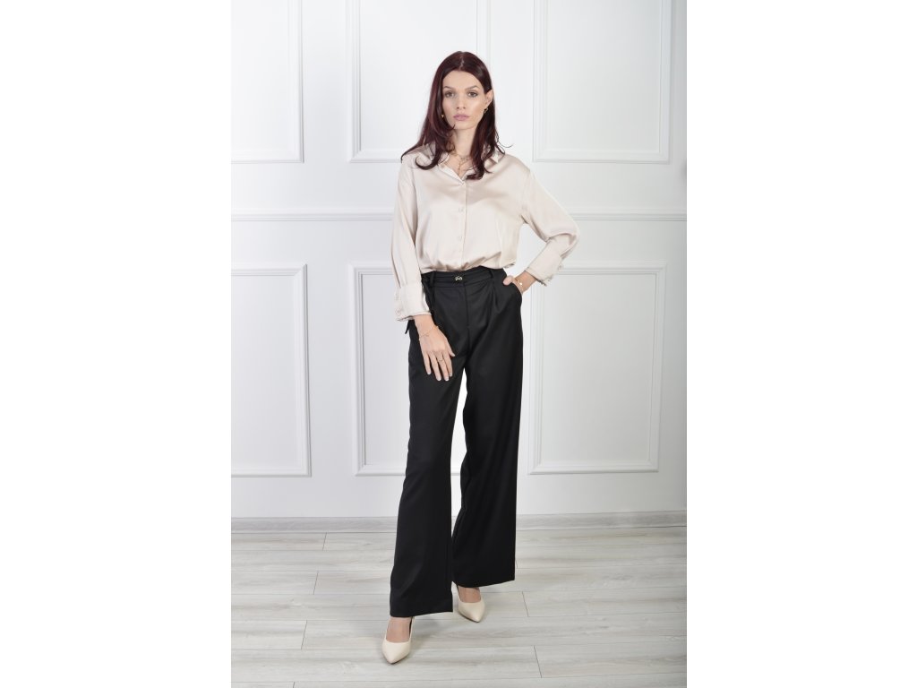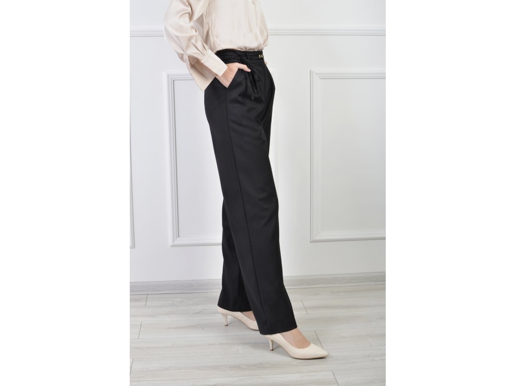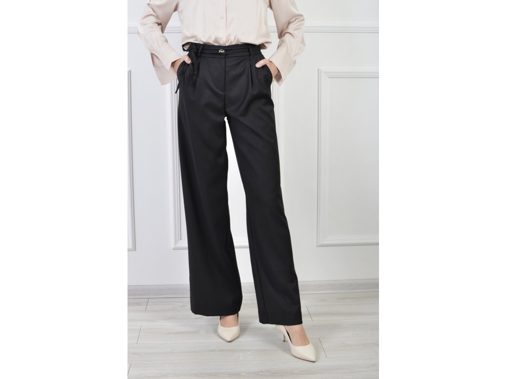 Dámske dlhé široké nohavice čiernej farby so šnurovaním 22313