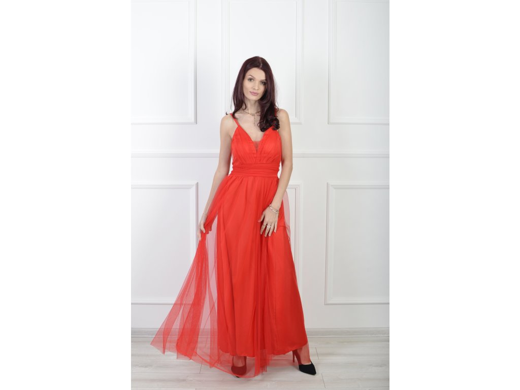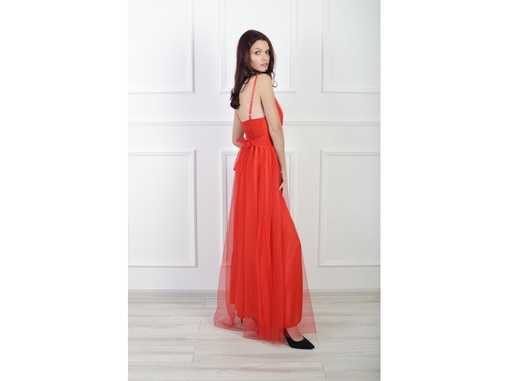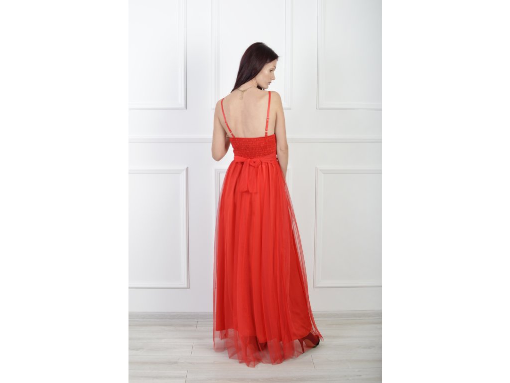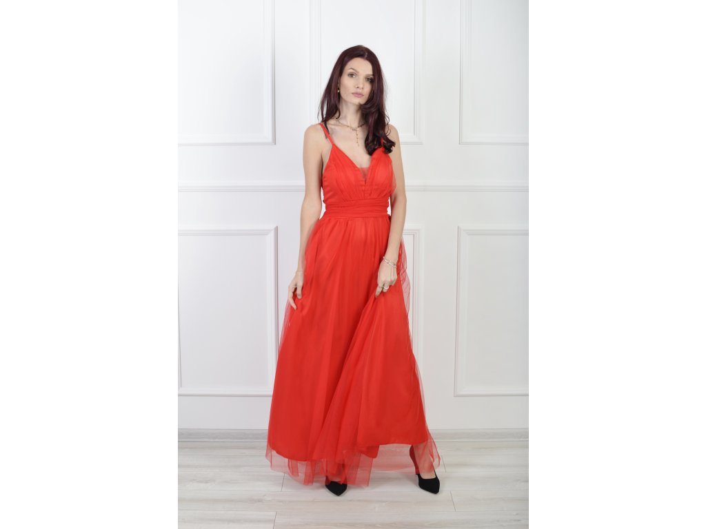 Dámske dlhé tylové šaty červenej farby na ramienka 22332