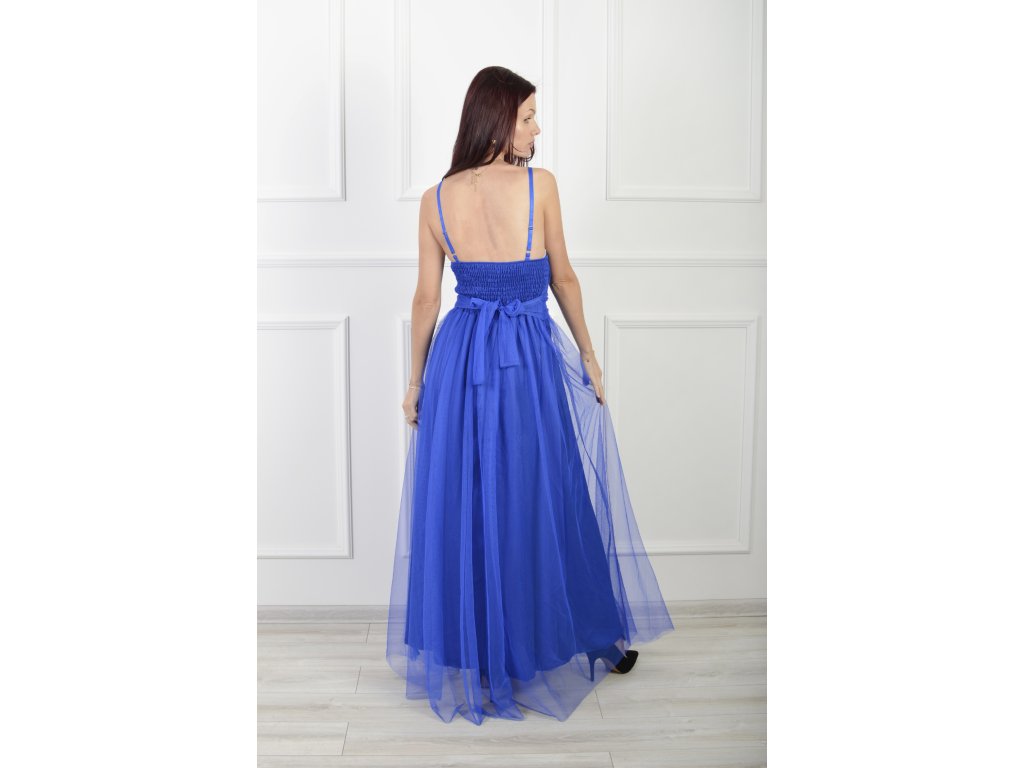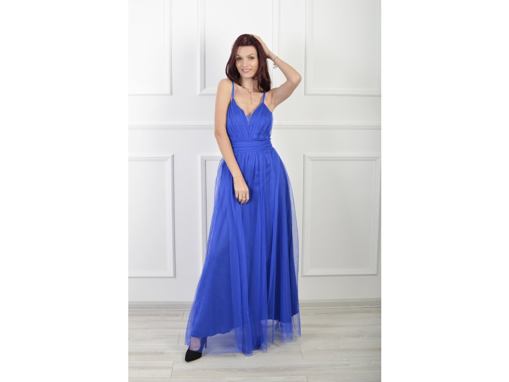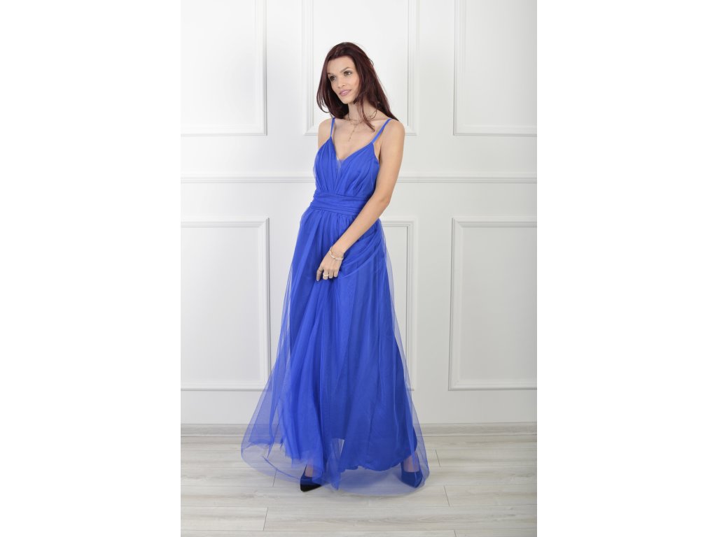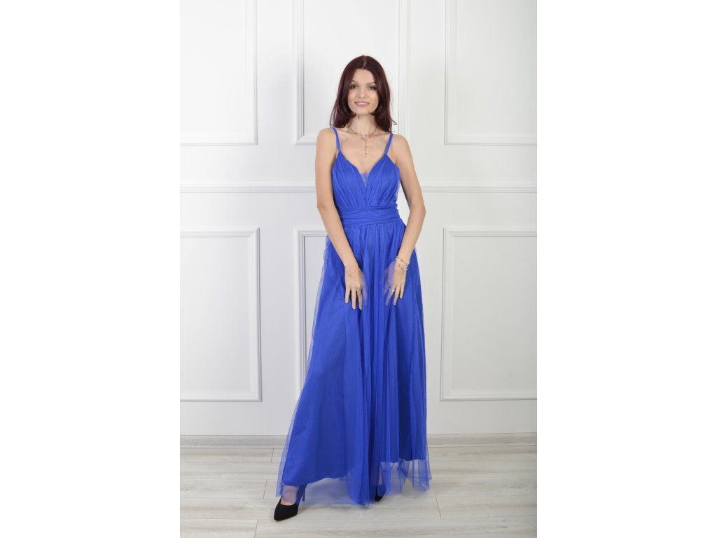 Dámske dlhé tylové šaty parížskej modrej farby na ramienka 22334