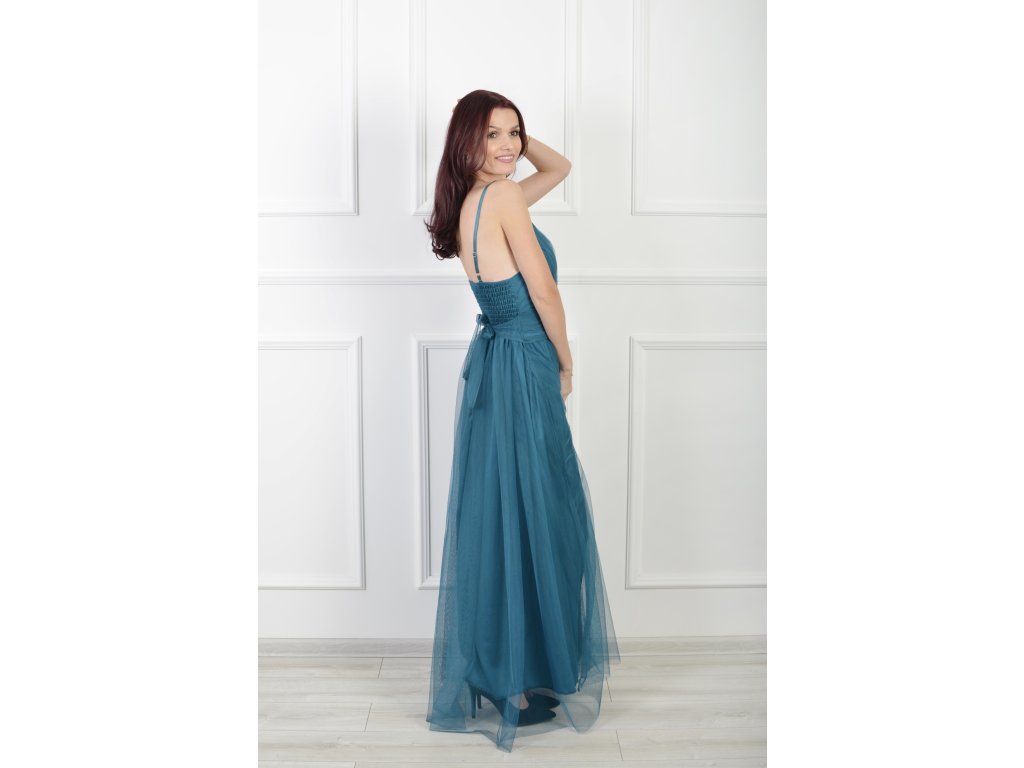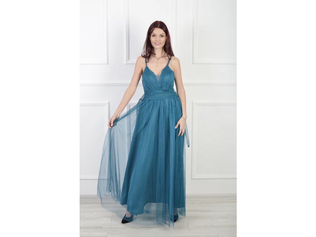 Dámske dlhé tylové šaty zelenej farby na ramienka 22335