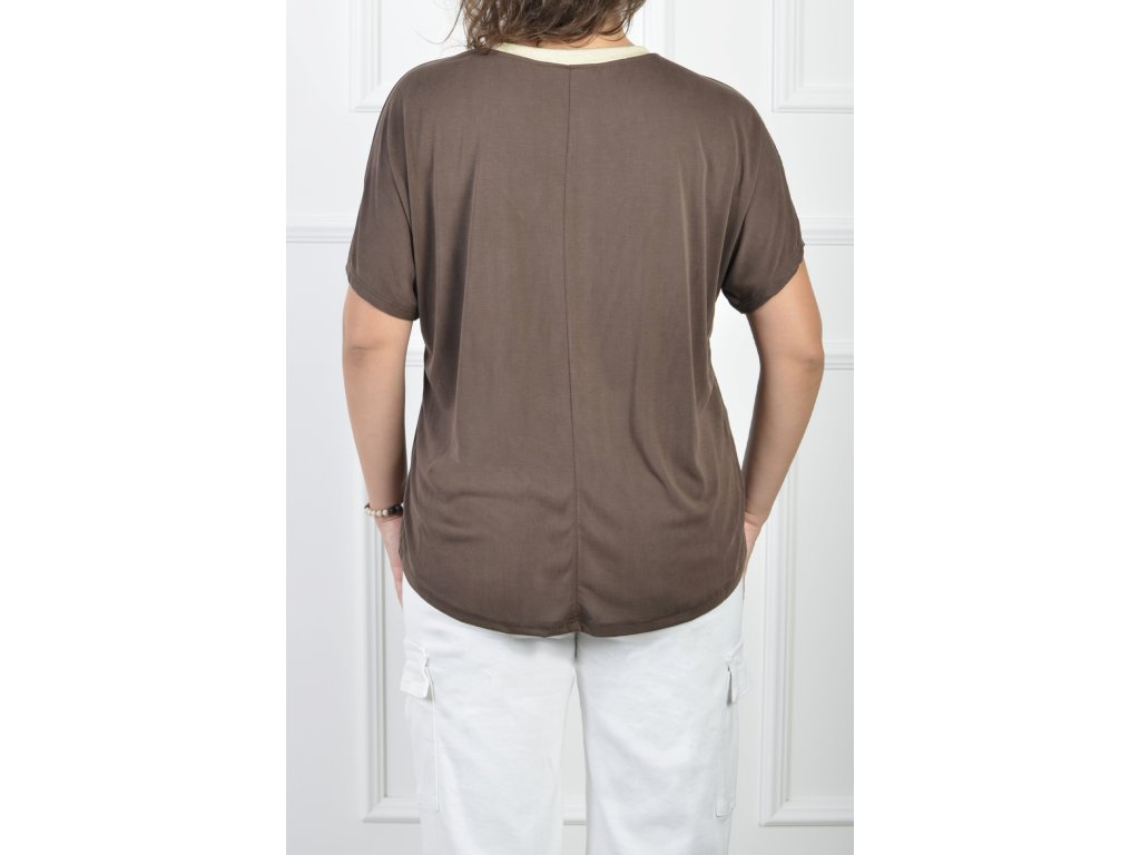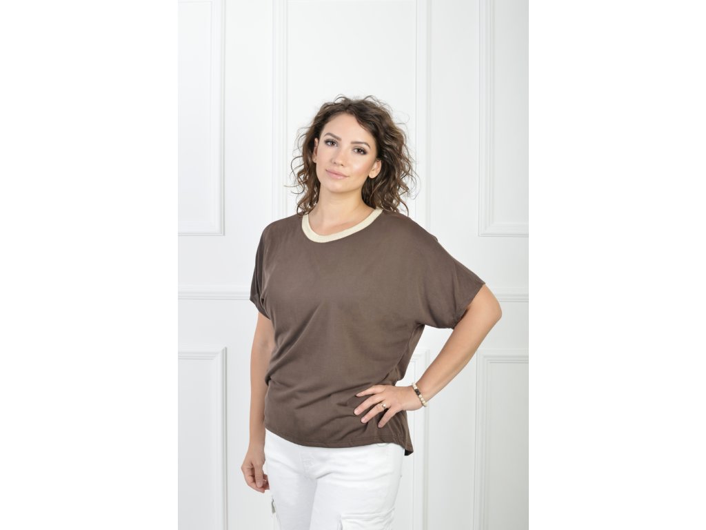Dámske hnedé tričko so zlatým lemom okolo krku 21929