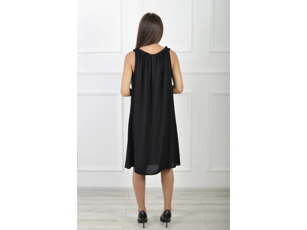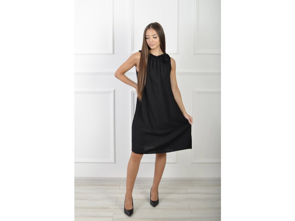 Dámske krátke bezrukávové šaty čiernej farby s odnímateľným kvetom 21786