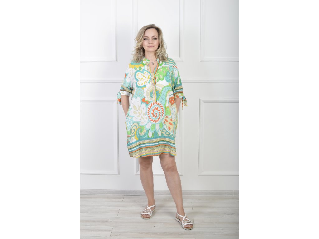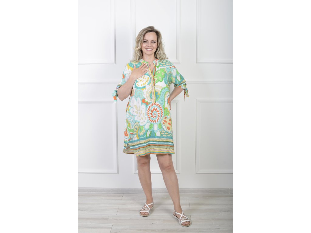 Dámske krátke zelené farebné šaty s viazaním na rukávoch 21975