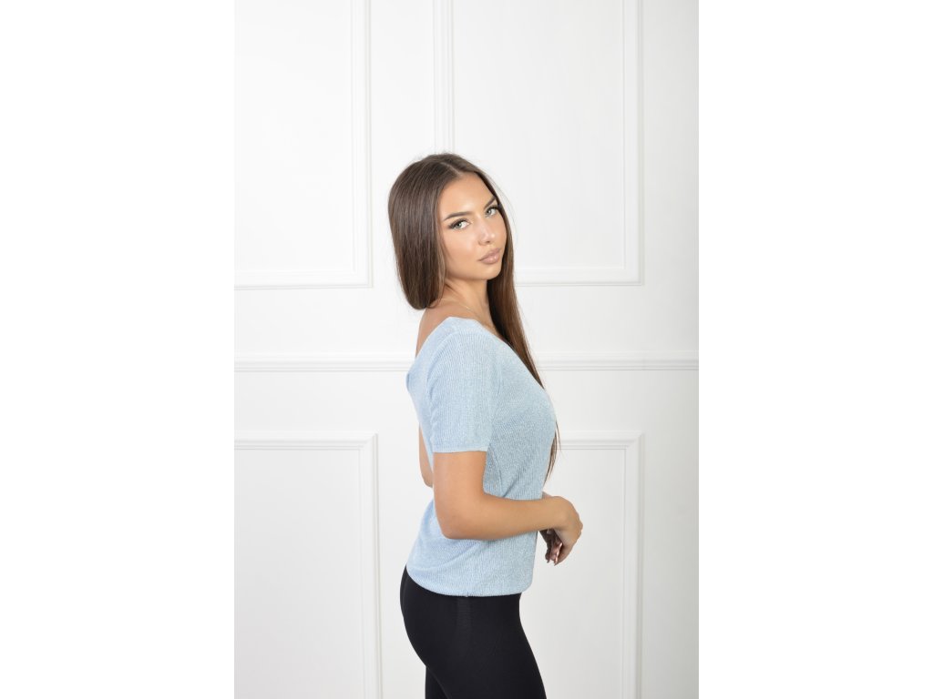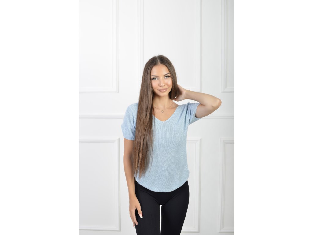 Dámske krátkorukávové pleteninové tričko modrej farby 21838