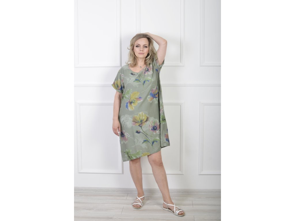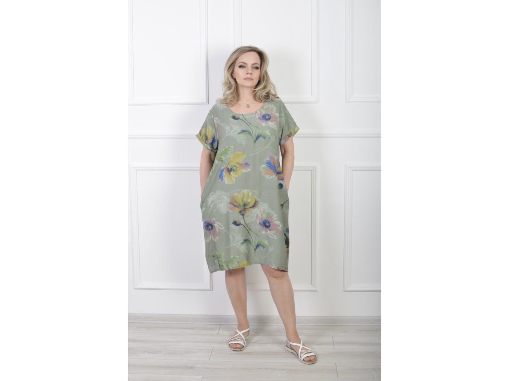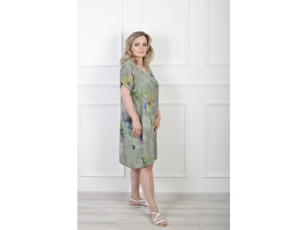 Dámske krátkorukávové zelené šaty so vzorom 22082