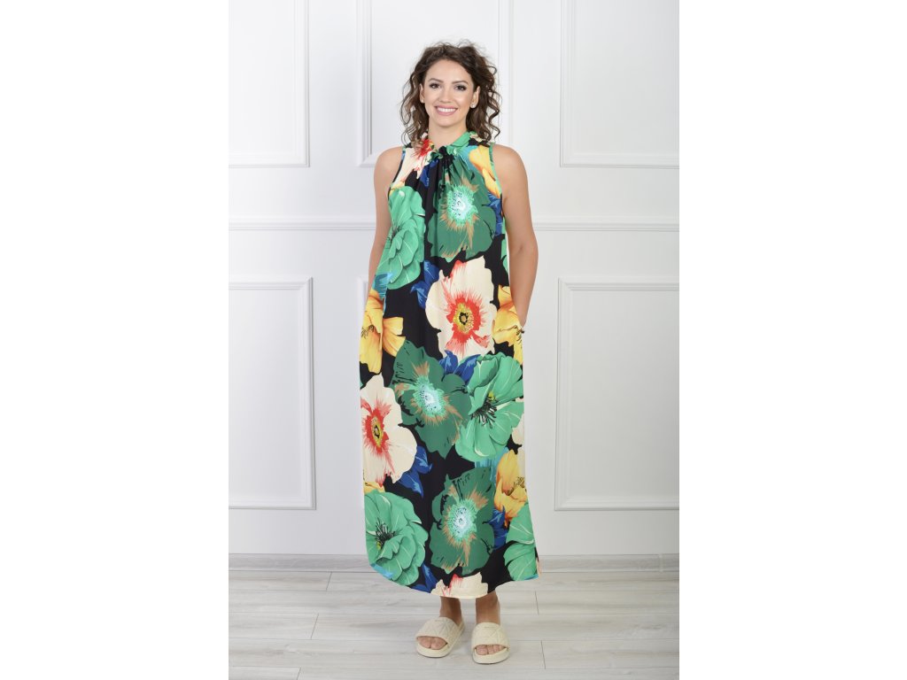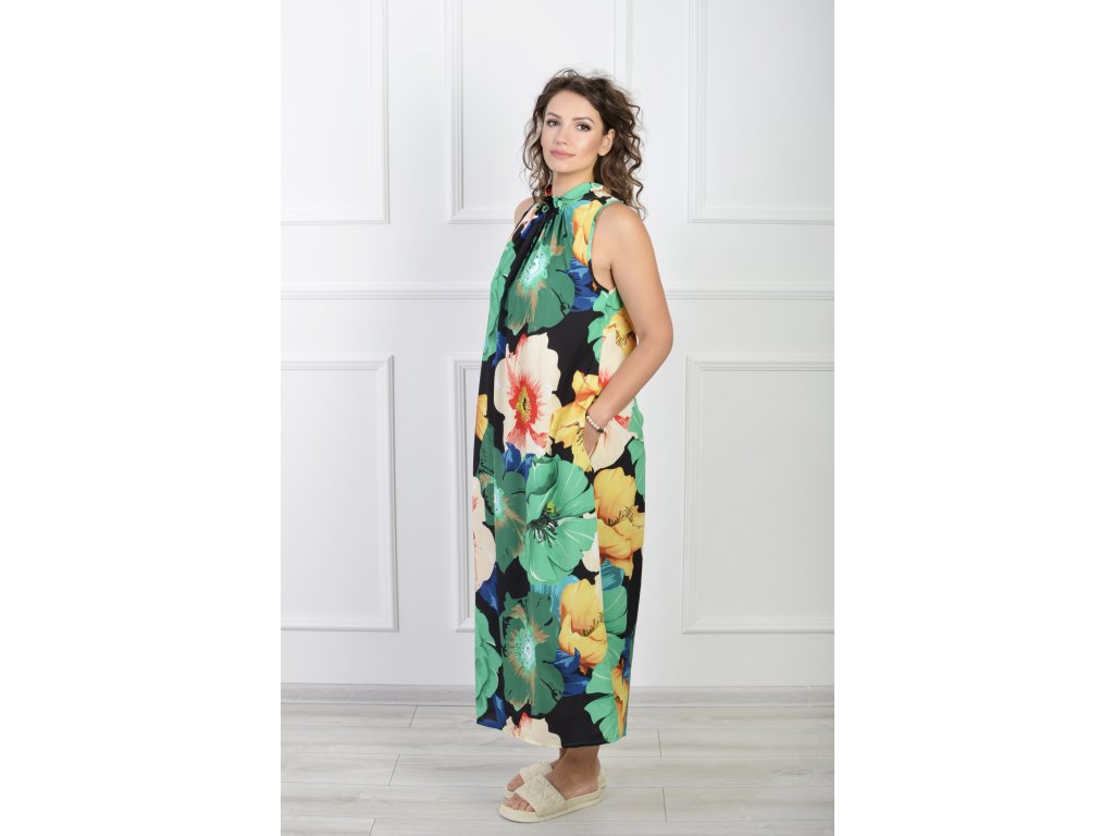 Dámske midi čierne šaty s farebnými kvetmi 22176