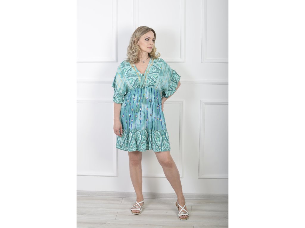 Dámske tyrkysové šaty s modrými flitrami 21840
