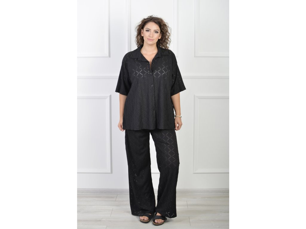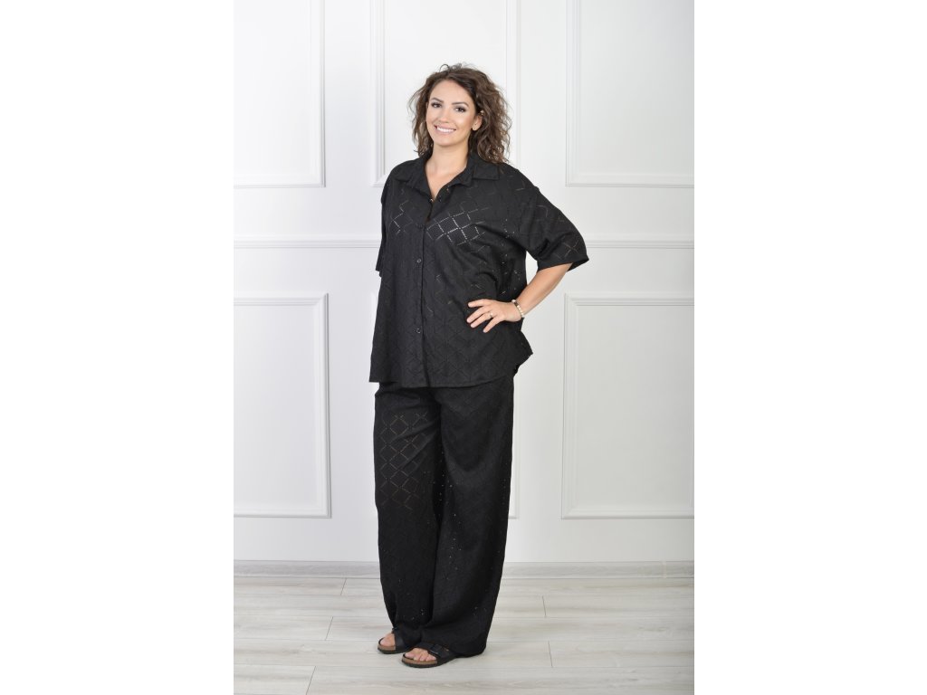 Dámsky čierny dierkovaný 2-komplet 21936