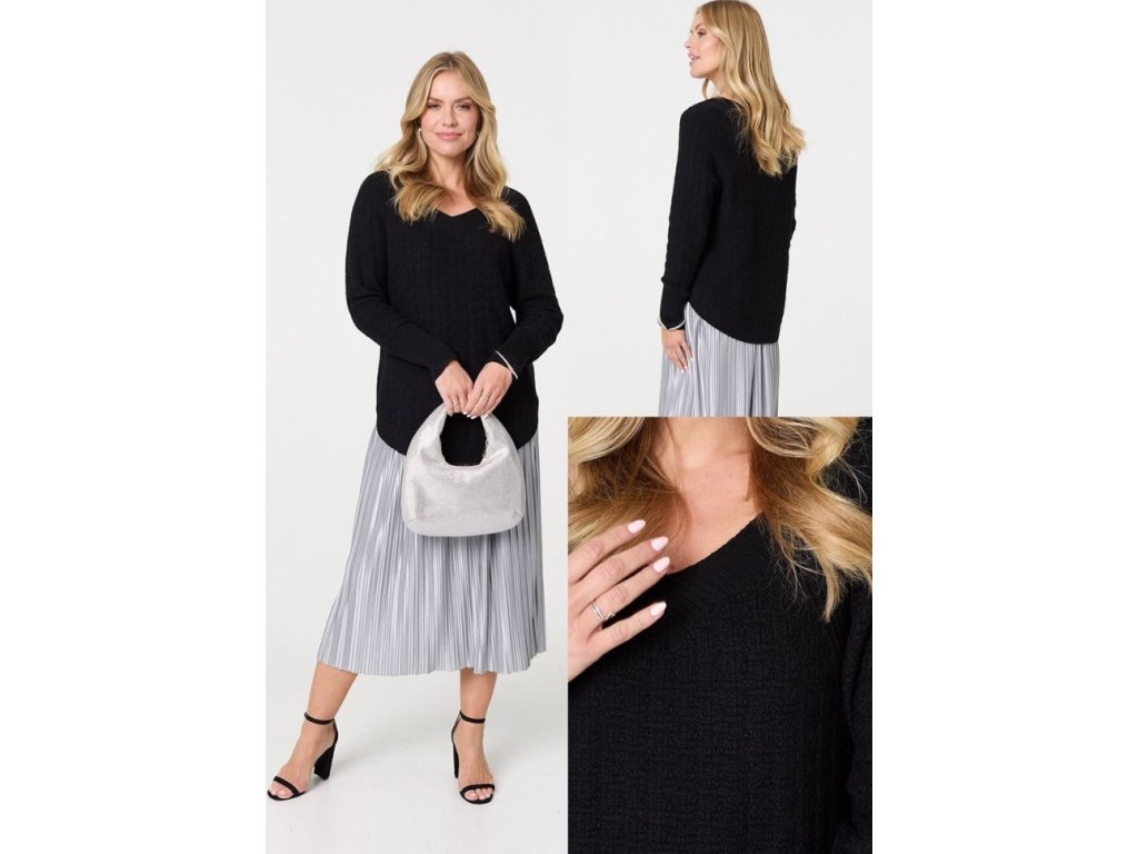 Dámsky čierny jednofarebný pulóver s V výstrihom 22243