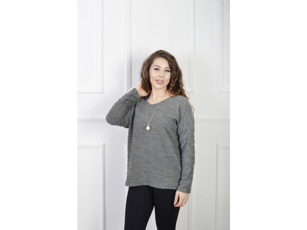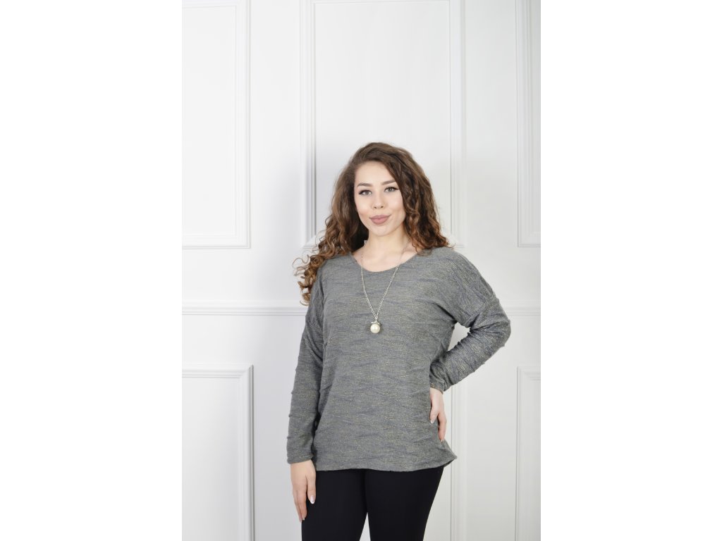 Dámsky sivý pulóver so zlatým vzorom 23108