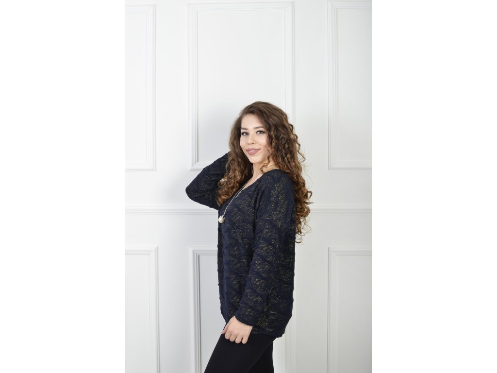 Dámsky tmavomodrý pulóver so zlatým vzorom 23110