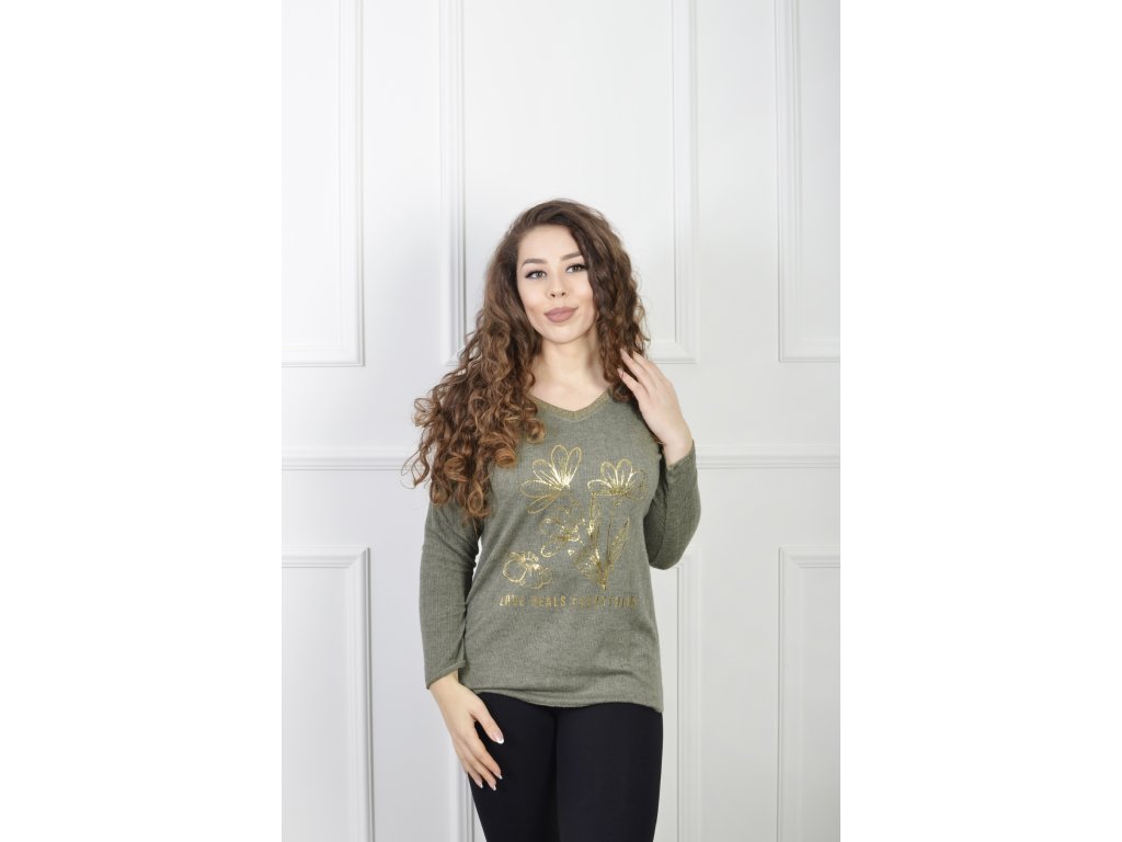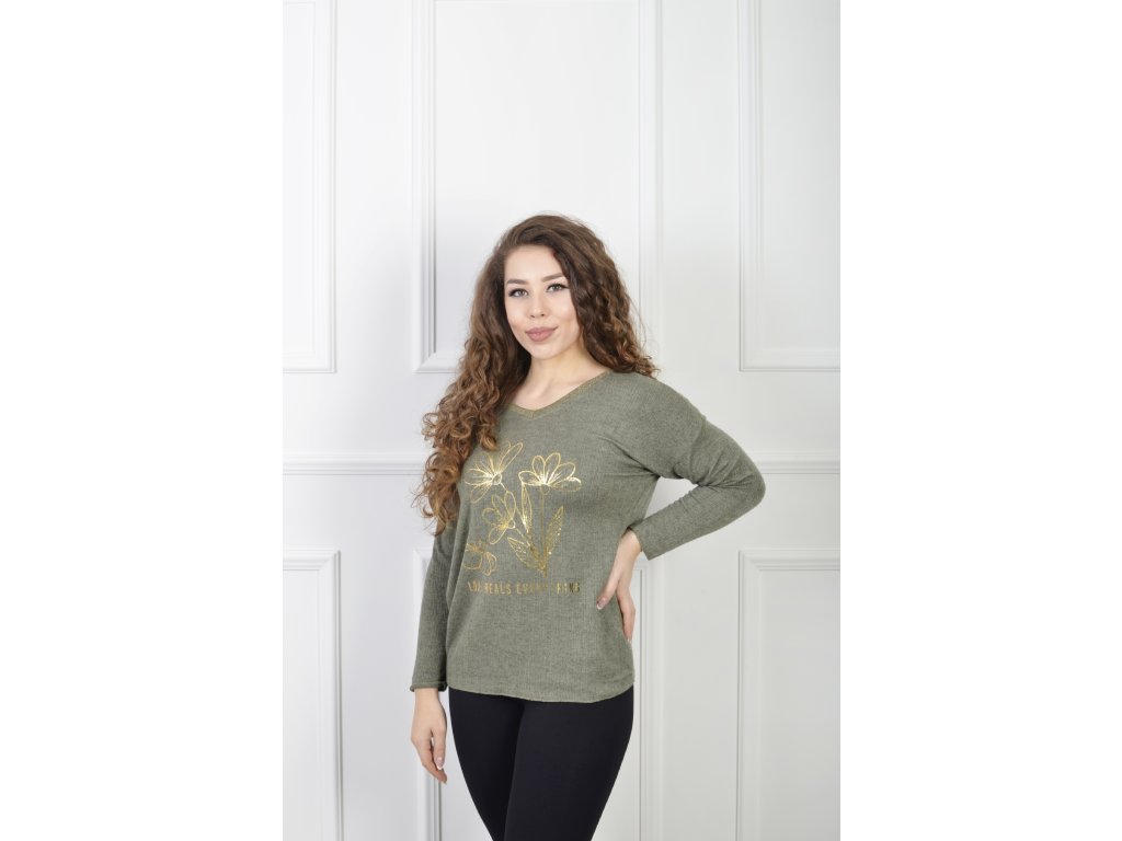 Dámsky zelený pulóver s kvetinovým motívom 23104