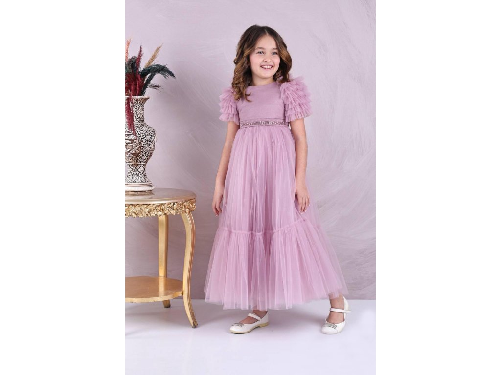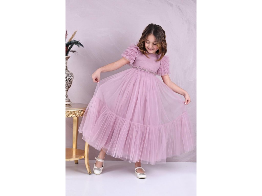 Dievčenské šaty staroružovej farby s tylovými rukávmi 21828