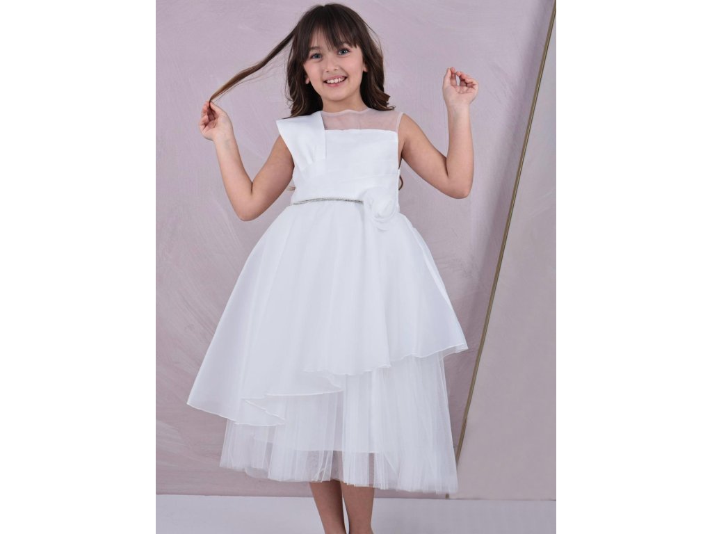 Dievčenské slávnostné biele šaty s tylovou sukňou 23173