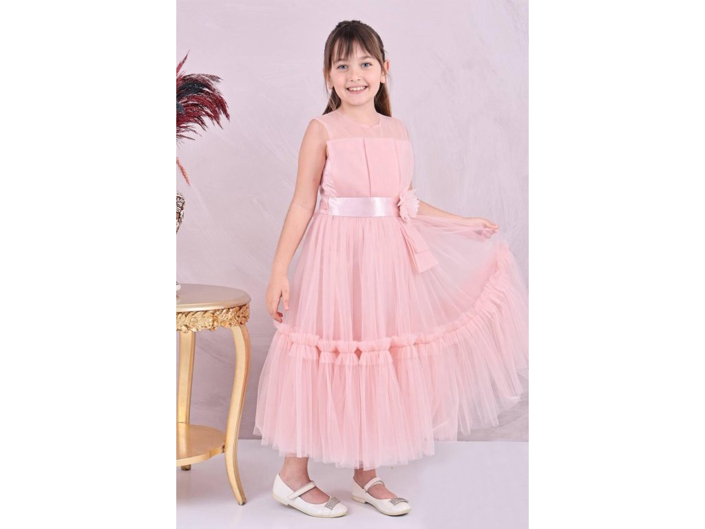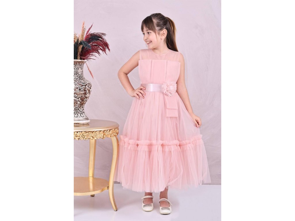 Dievčenské staroružové šaty s ozdobným kvetom v páse 21827