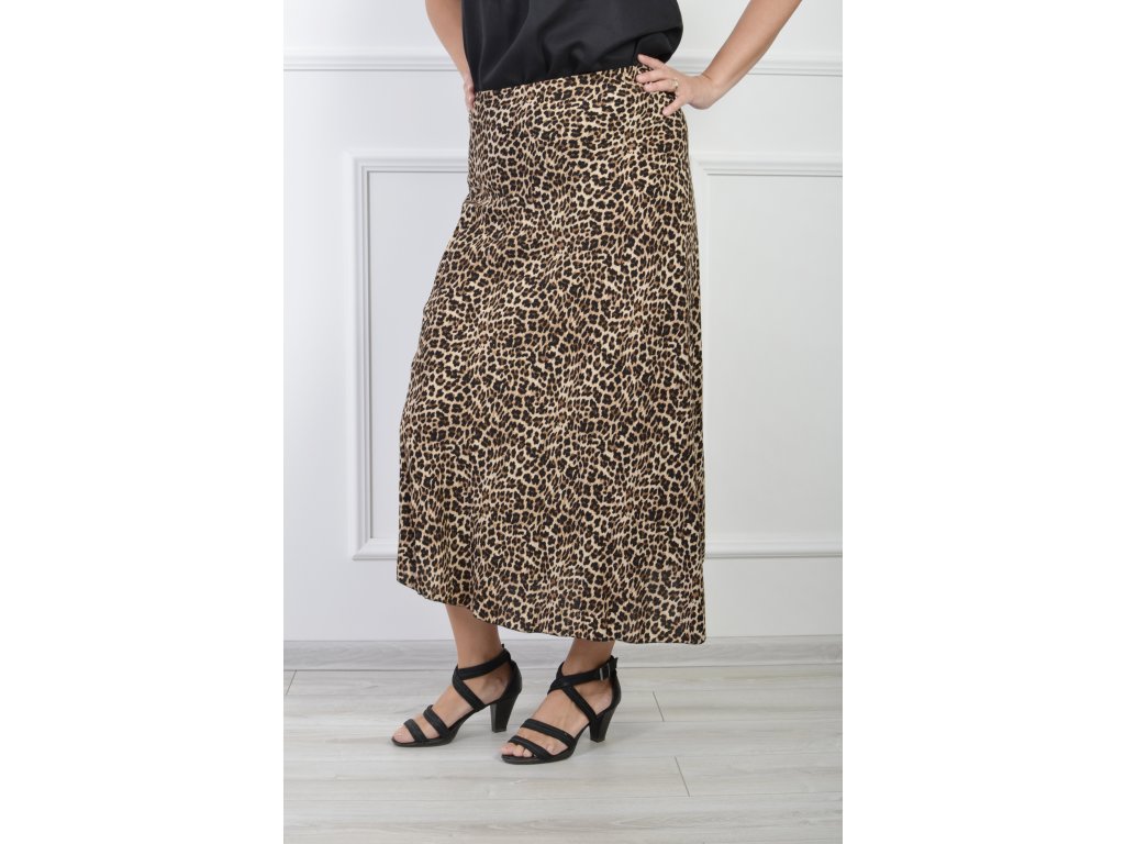 Dlhá dámska leopardia sukňa s gumičkou v páse.