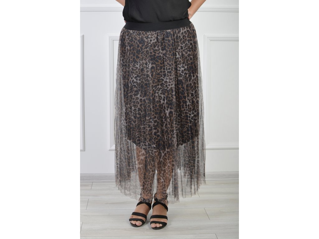 Dlhá dámska tylová sukňa leopardej farby 22026