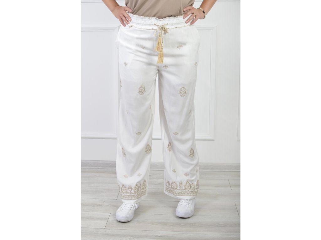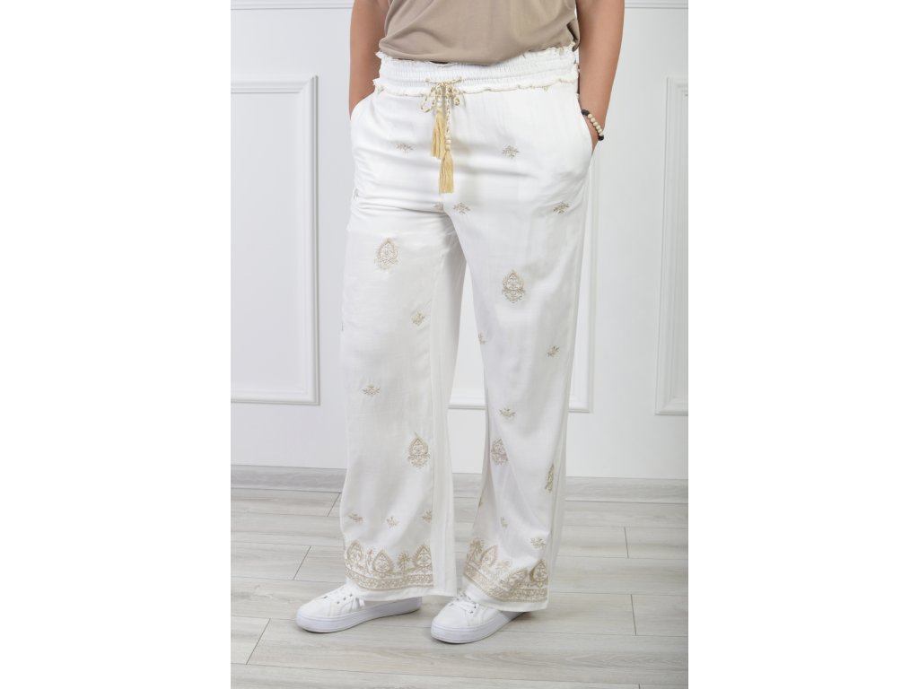 Dlhé dámske maslové nohavice s vyšívaným vzorom 21947