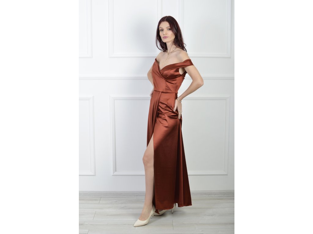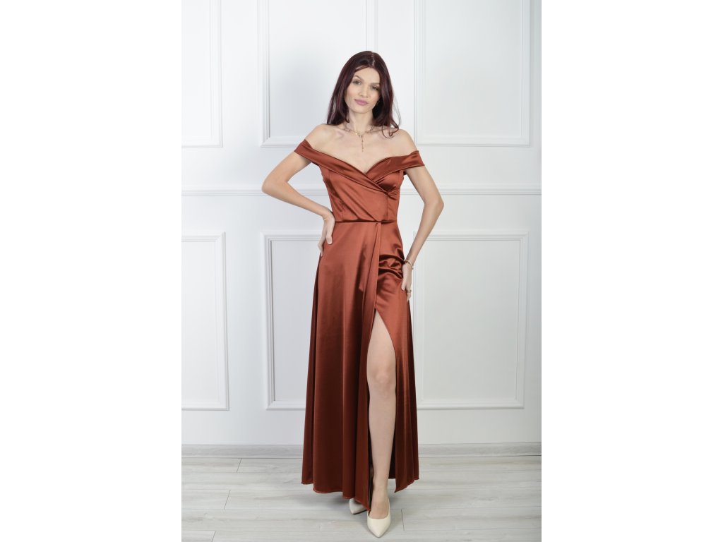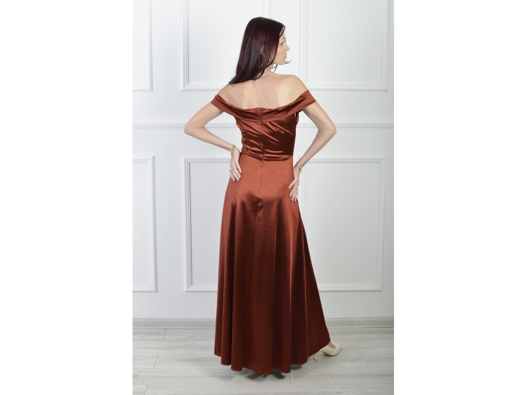 Dlhé hladké dámske šaty tehlovej farby s odhalenými plecami 22347