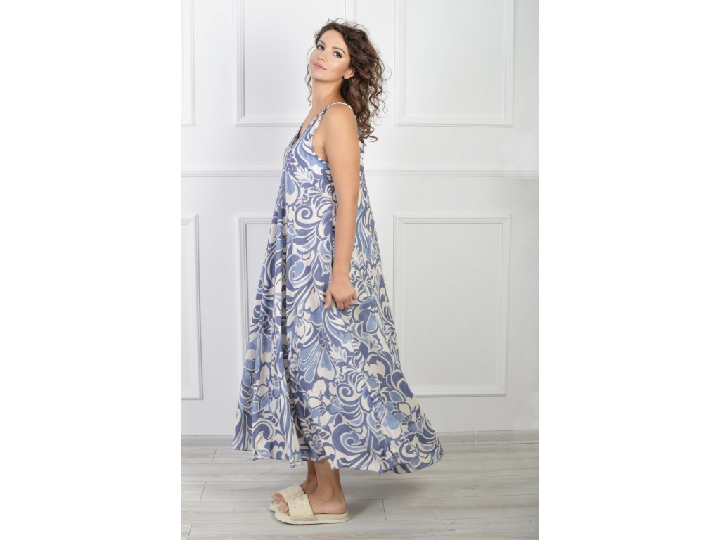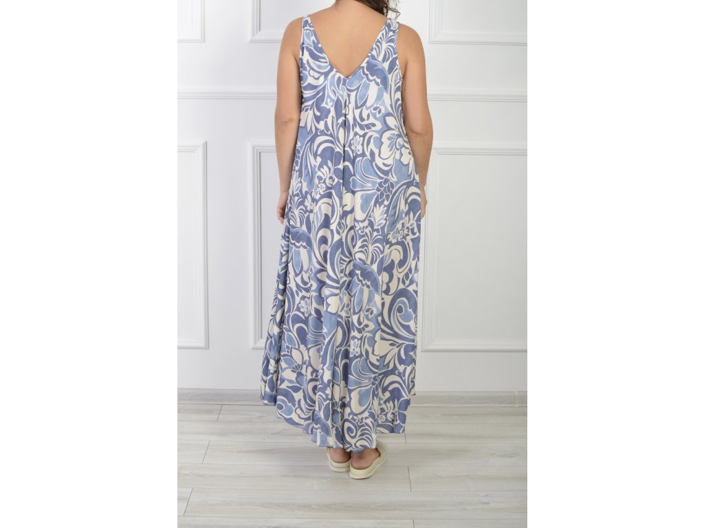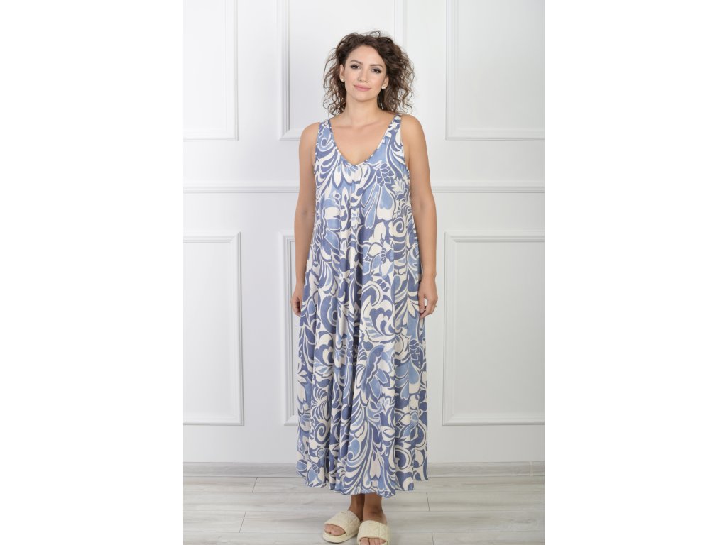 Dlhé letné bezrukávové krémovo-modré šaty so vzorom 22157