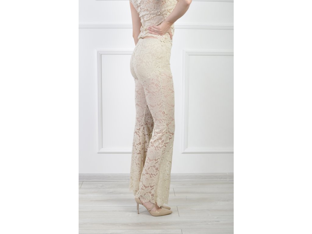 Dlhé zvonové čipkované nohavice béžovej farby 22033