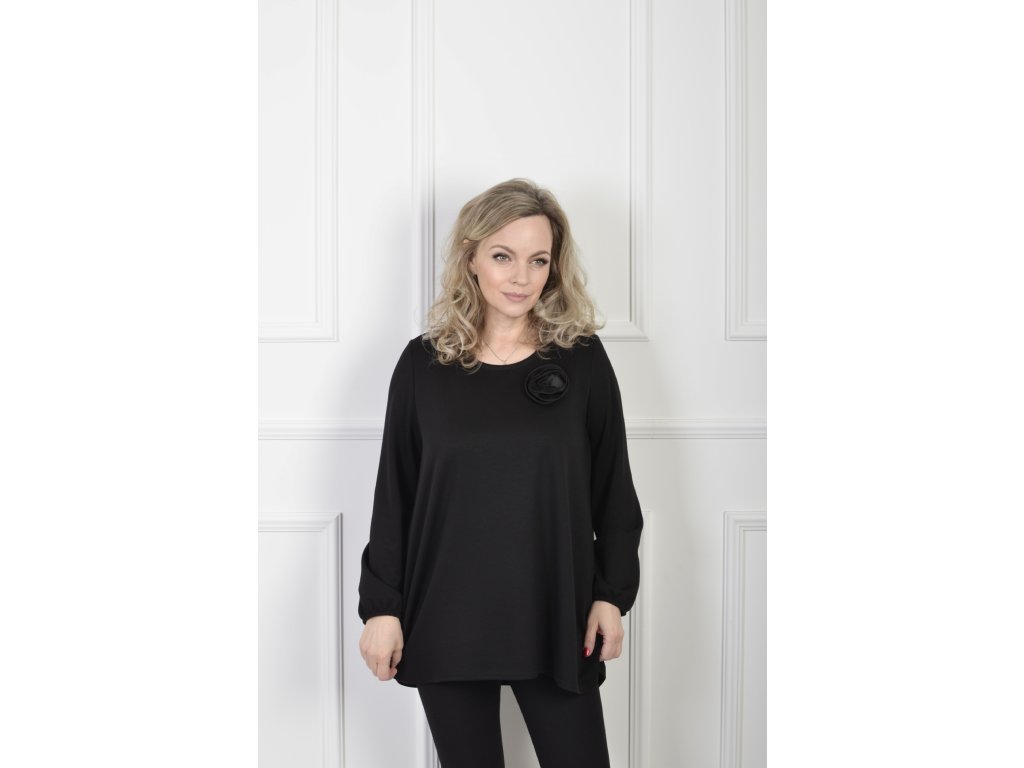 Elegantná čierna tunika s dekoratívnym kvetom 22898