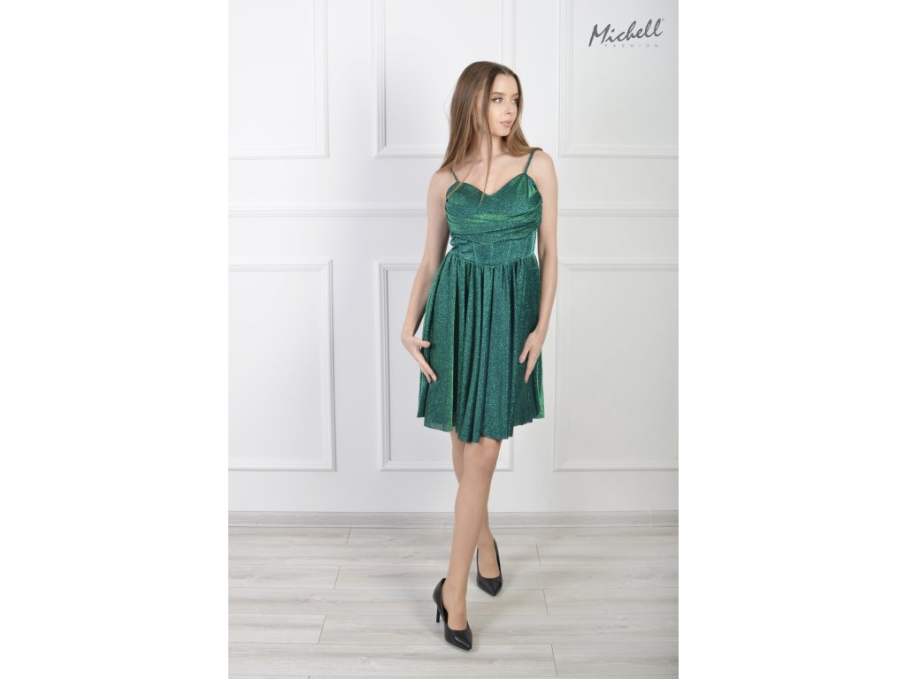 Tieto očarujúce šaty v zelenom odtieni sú ideálnou voľbou pre každú spoločenskú príležitosť. Jemne trblietavý materiál dodáva modelu luxusný vzhľad, zatiaľ čo priliehavý vrch so subtílnymi ramienkami krásne zvýrazní siluetu. Rozšírená sukňa s ľahkým padavým efektom pôsobí žensky a zároveň zabezpečuje pohodlie pri pohybe. Šaty sú vhodné na plesy, oslavy, svadby či večerné podujatia. Stačí ich doplniť jednoduchými doplnkami a vytvoríte elegantný outfit bez námahy.