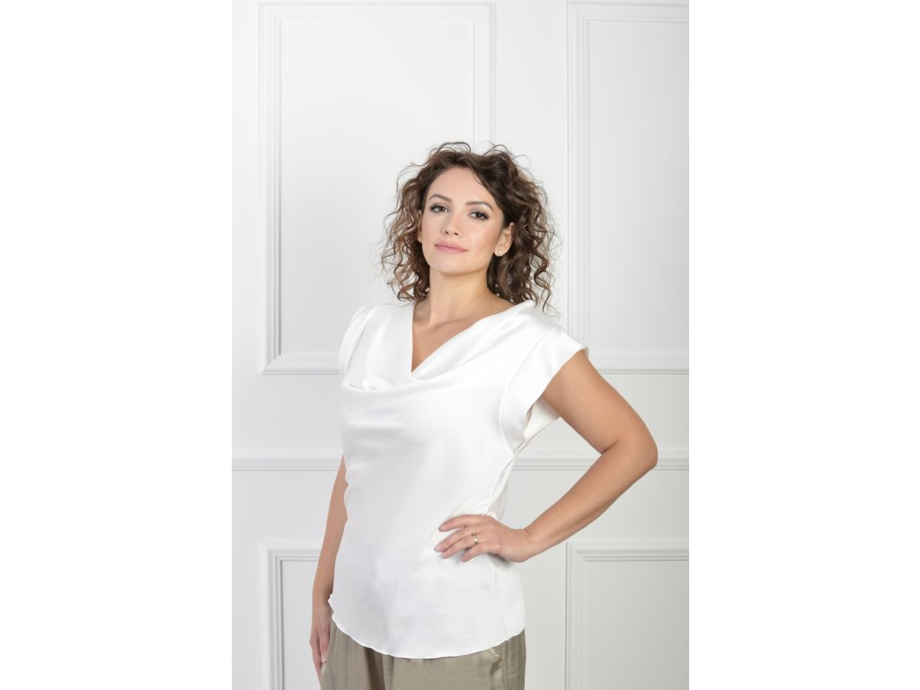 Hladká dámska biela blúzka s padnutými rukávmi 21932