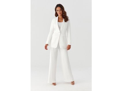 Dámsky biely kostým s dlhými nohavicami a sakom. Sako sa zapína na jeden gombík a má dve vrecká na prednom diely. Nohavice sú na spodku voľné. Elegantný kostým vhodný na...