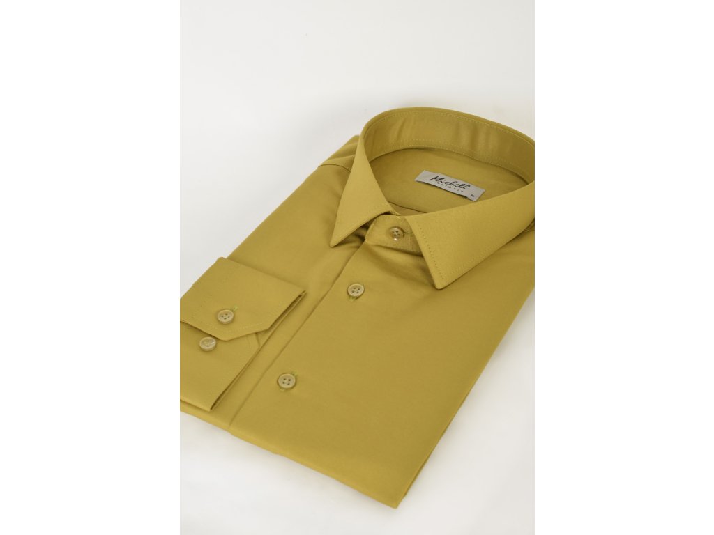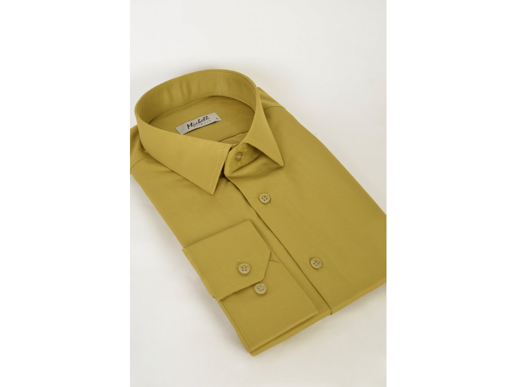 Pánska horčicová košeľa klasického strihu s dlhým rukávom na výšku 176 až 182 cm 19339