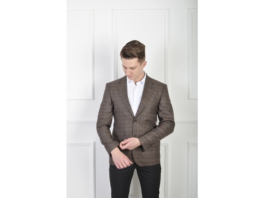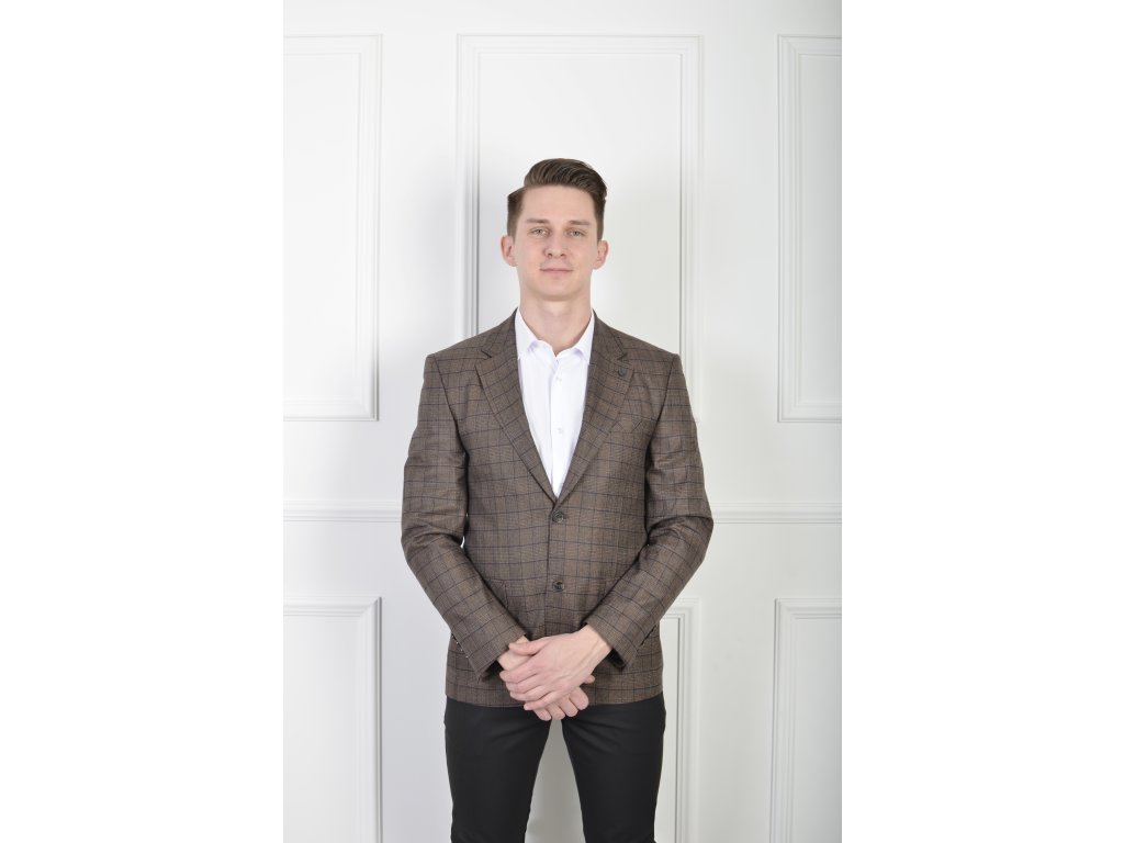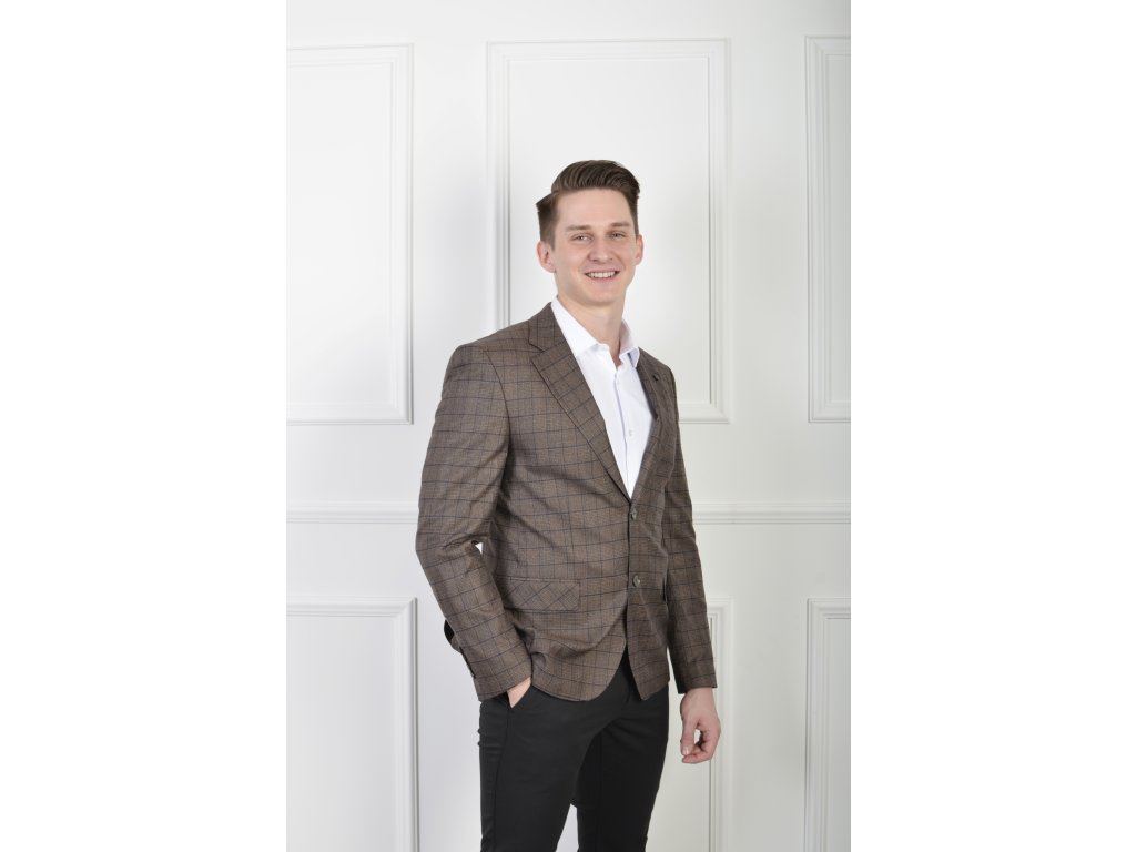 Pánske elegantné hnedé kárované sako 23044