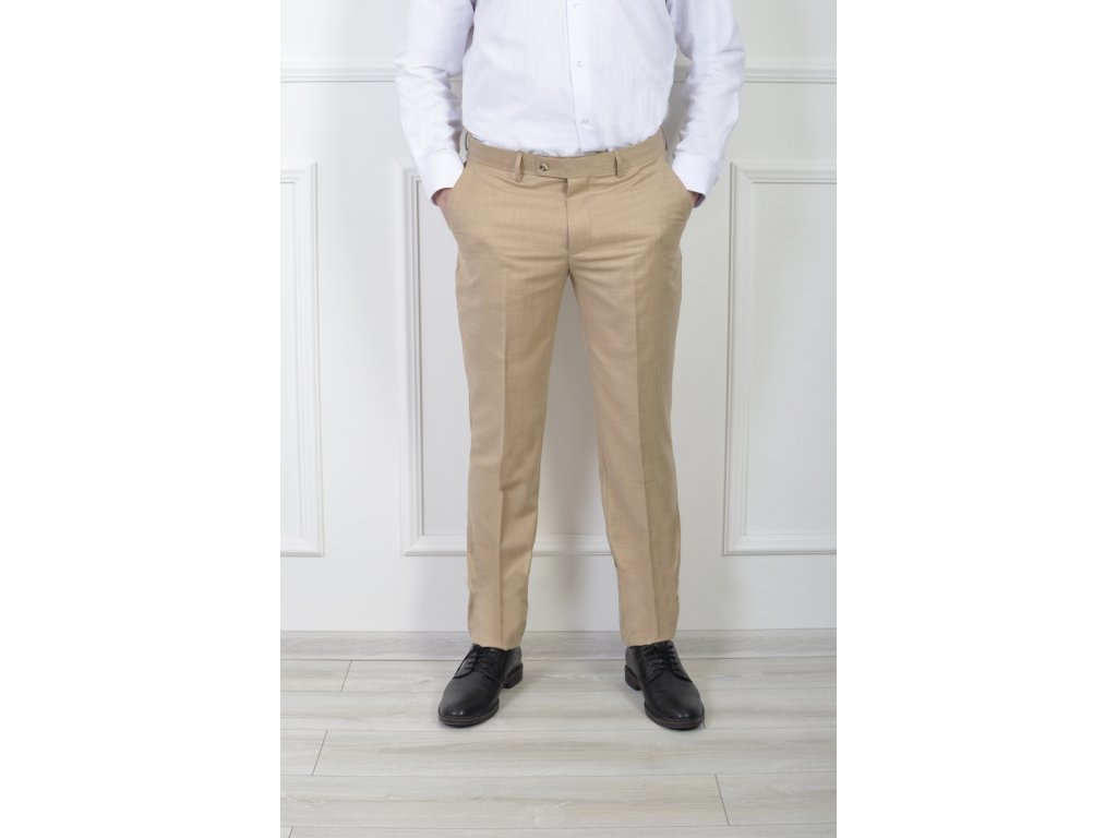 Pánske hladké oblekové nohavice béžovej camel farby. Nohavice majú vrecká, pútka na opasok a zapínanie na zips a gombík. Pár ku kódu 21510.